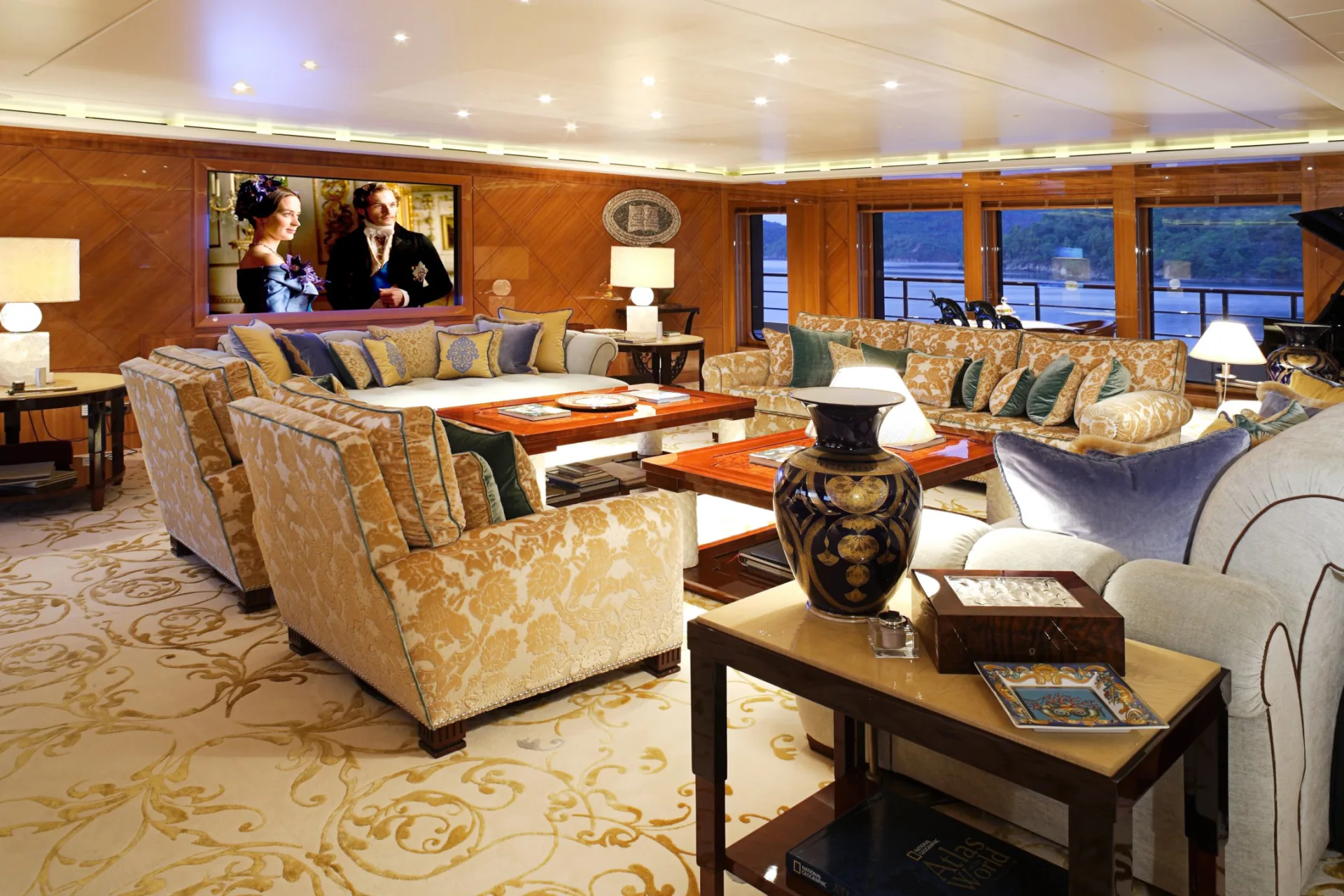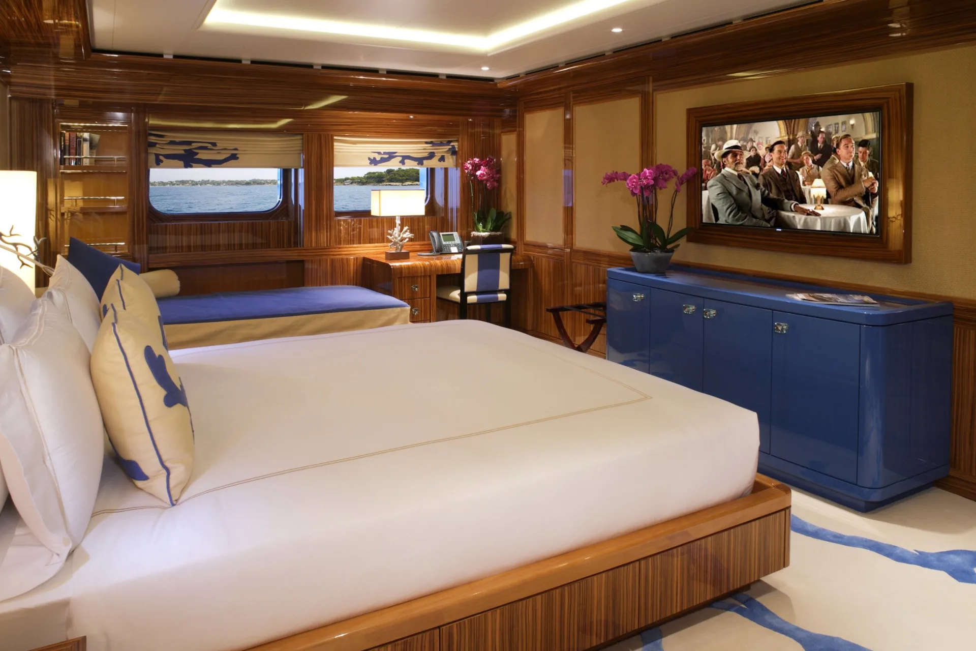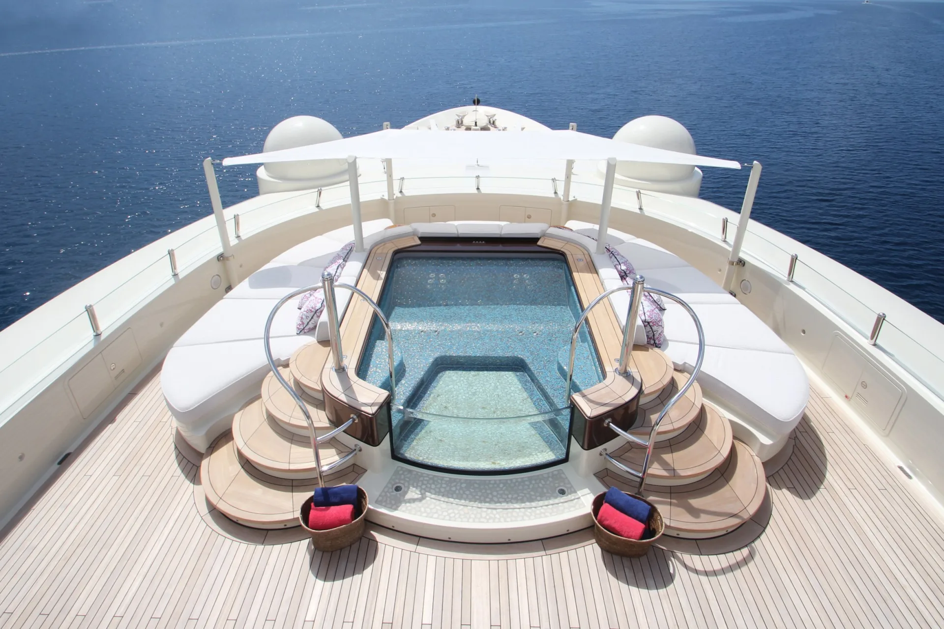 Her features include beauty salon, elevator, underwater lights, beach club, gym and air conditioning.