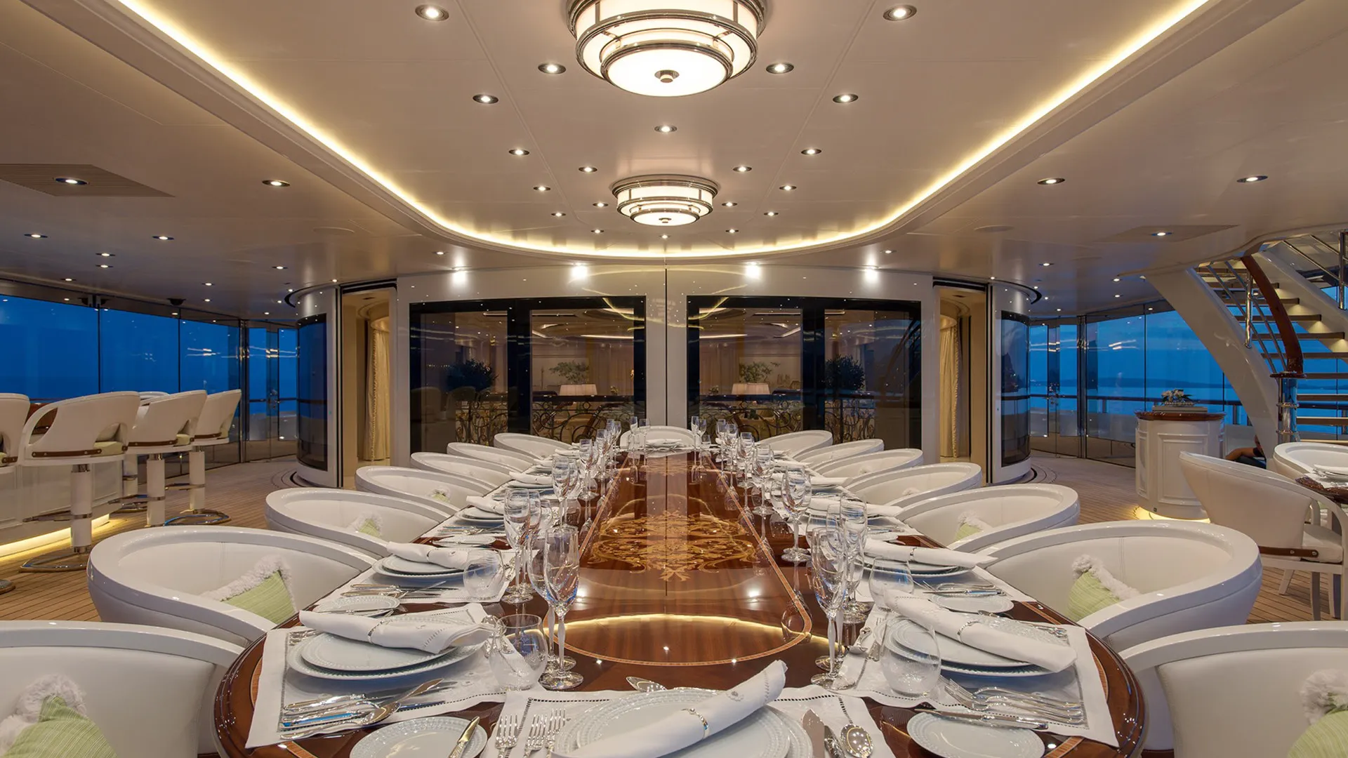Alaiya has been designed to comfortably accommodate up to 18 guests in 9 suites. She is also capable of carrying up to 38 crew onboard to ensure a relaxed luxury yacht experience.