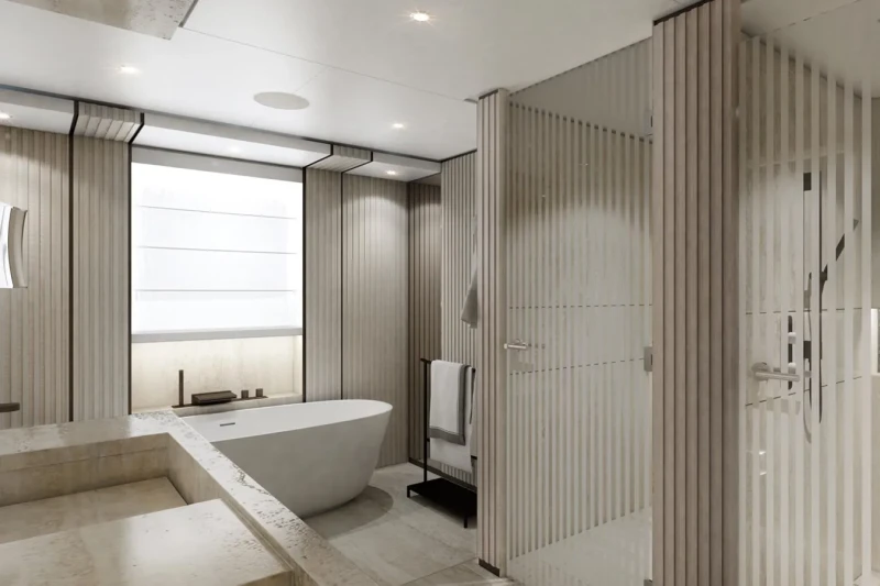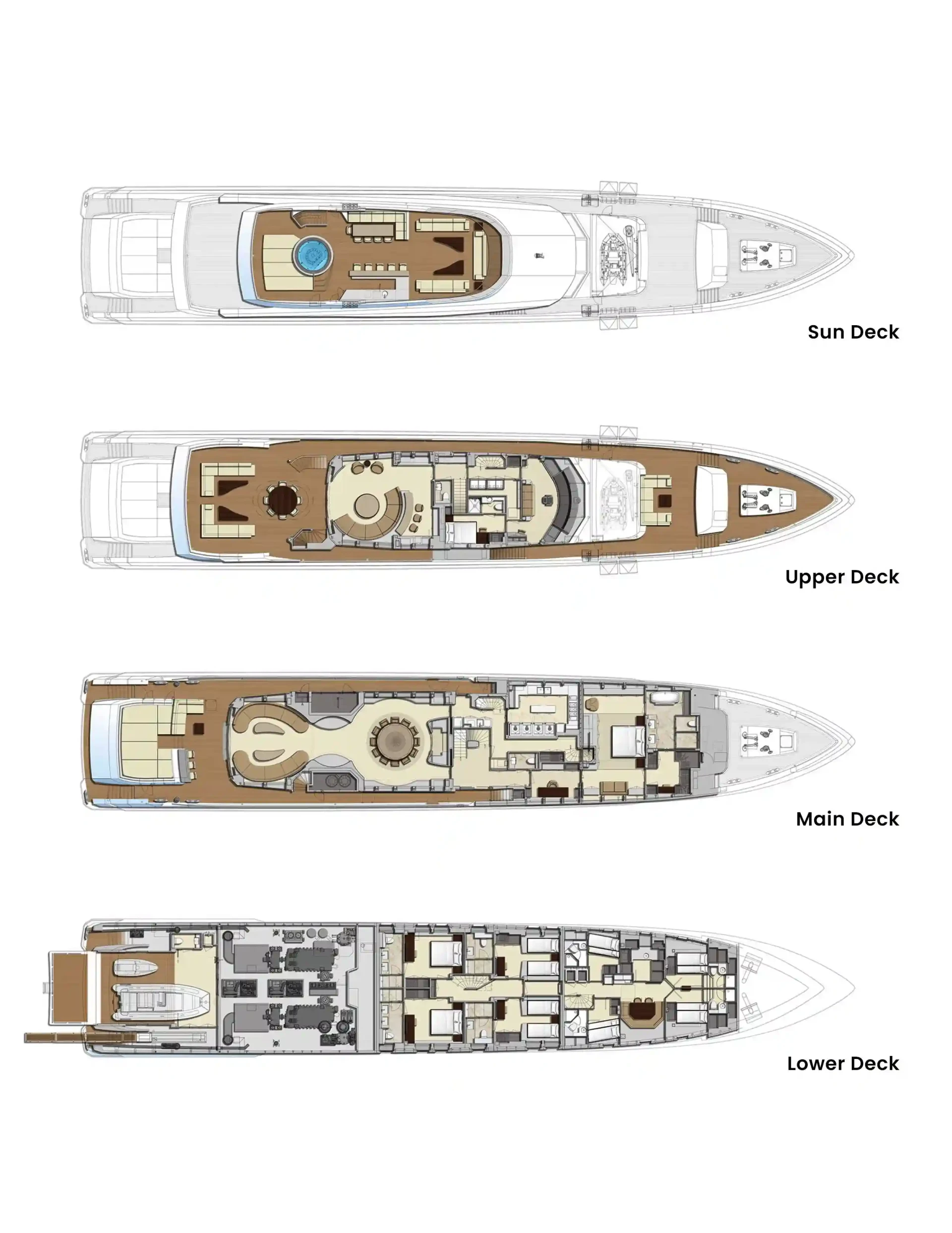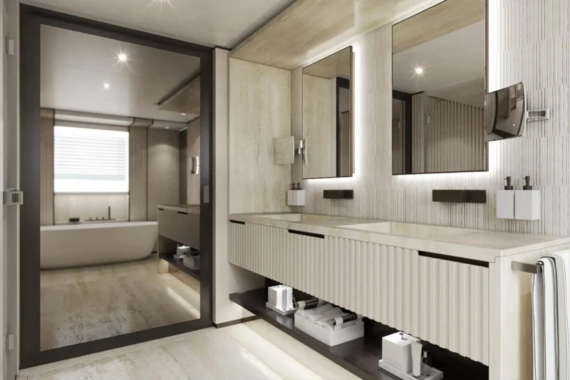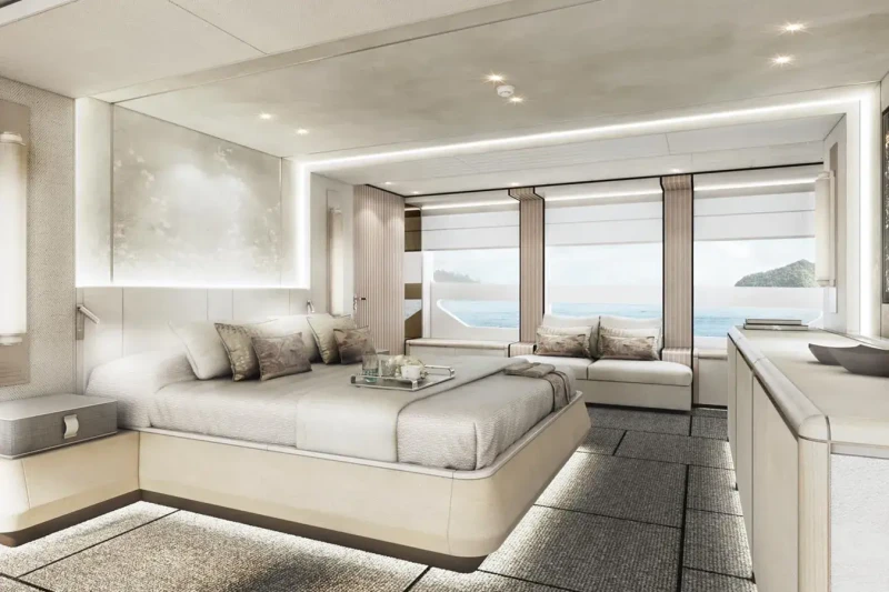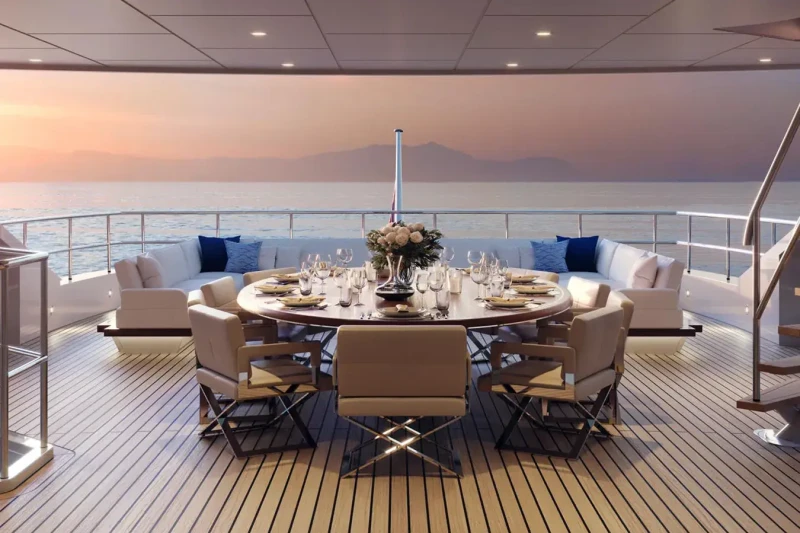 Aquamarine X has been designed to comfortably accommodate up to 10 guests in 5 suites. She is also capable of carrying up to 9 crew onboard to ensure a relaxed luxury yacht experience.