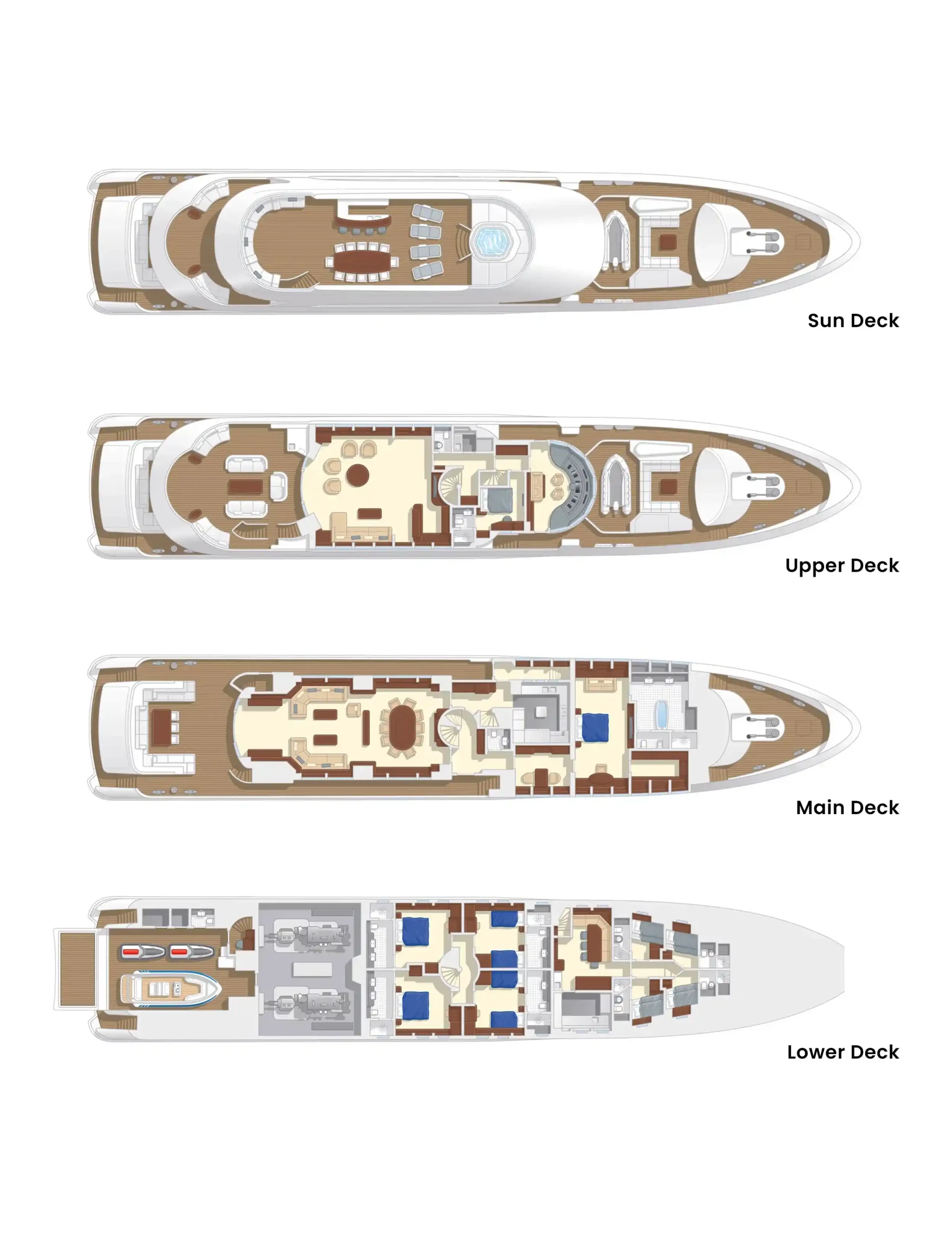 My Secret has been designed to comfortably accommodate up to 10 guests in 5 suites. She is also capable of carrying up to 10 crew onboard to ensure a relaxed luxury yacht experience.