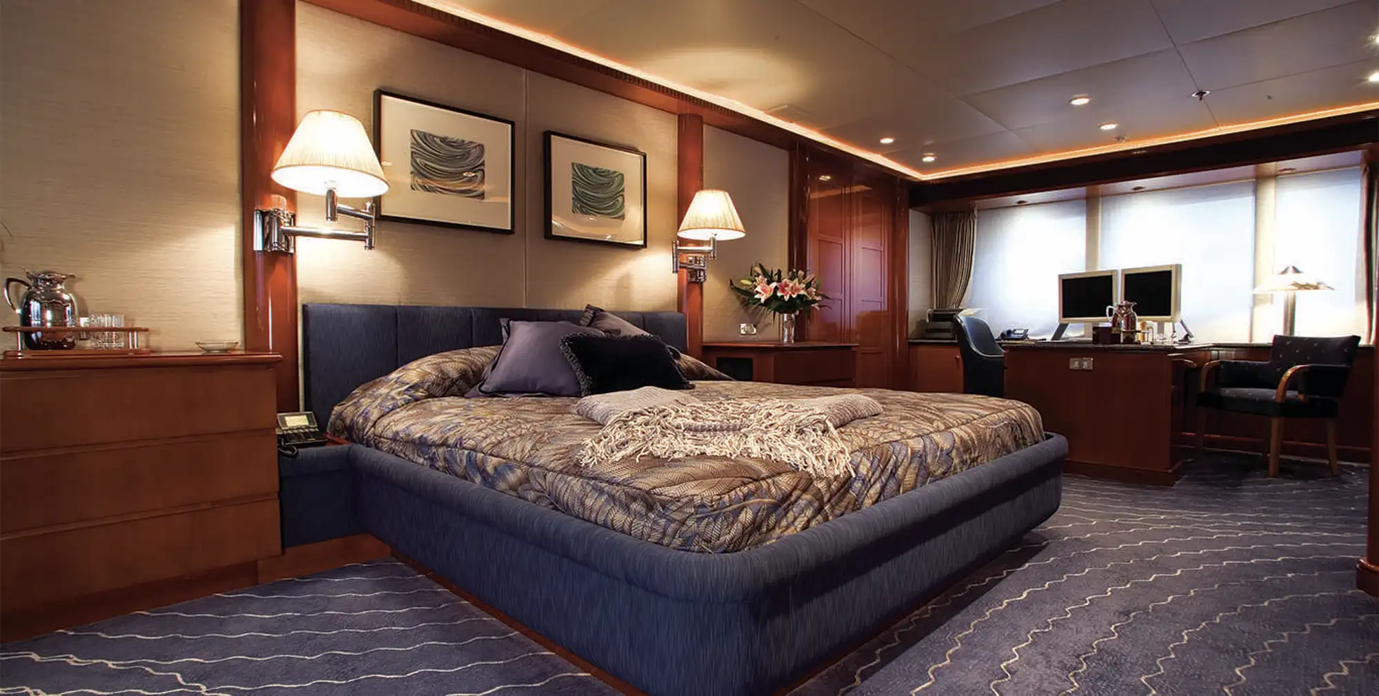 Her features include a movie theatre and elevator.