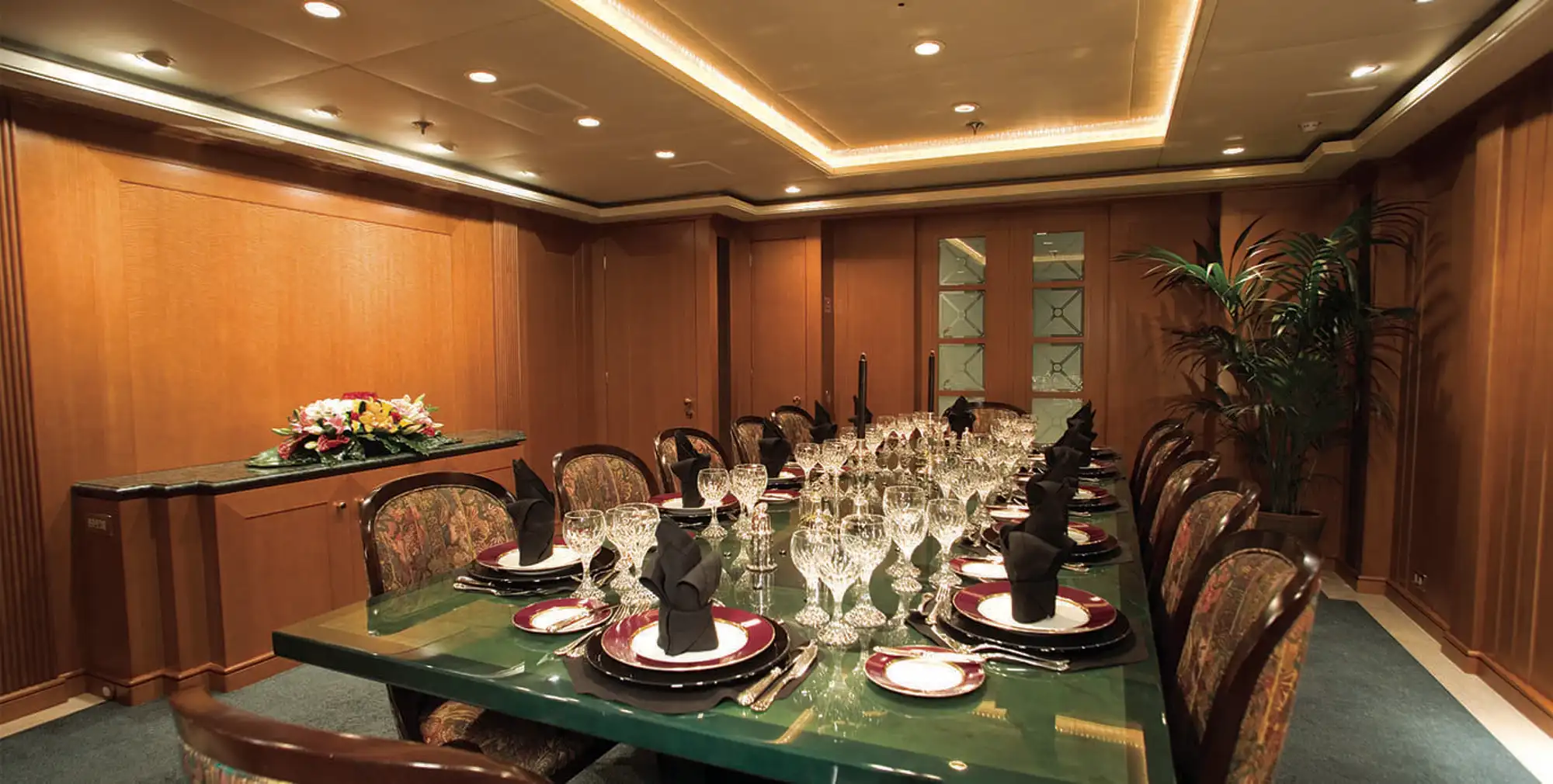 Her features include a movie theatre and elevator.