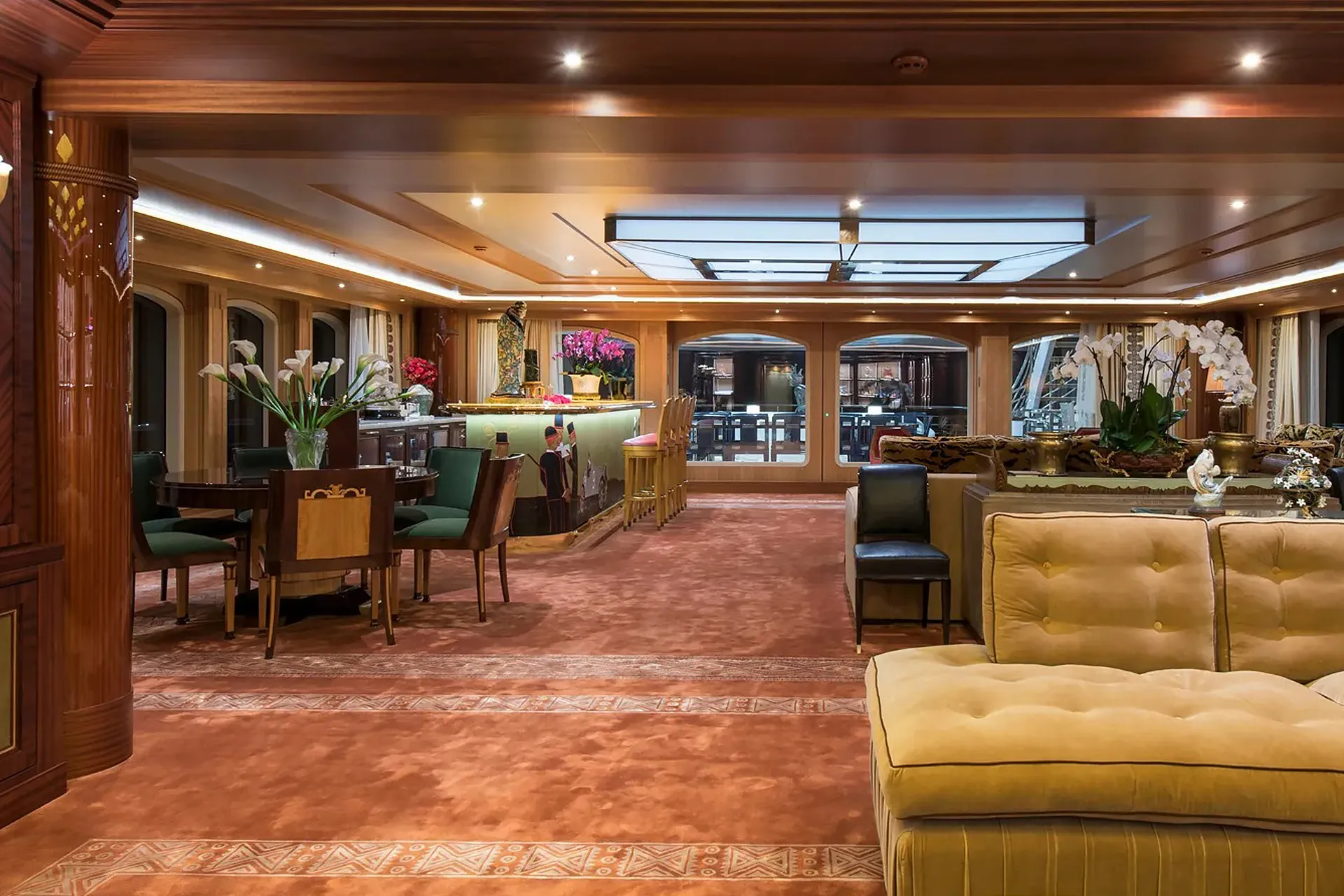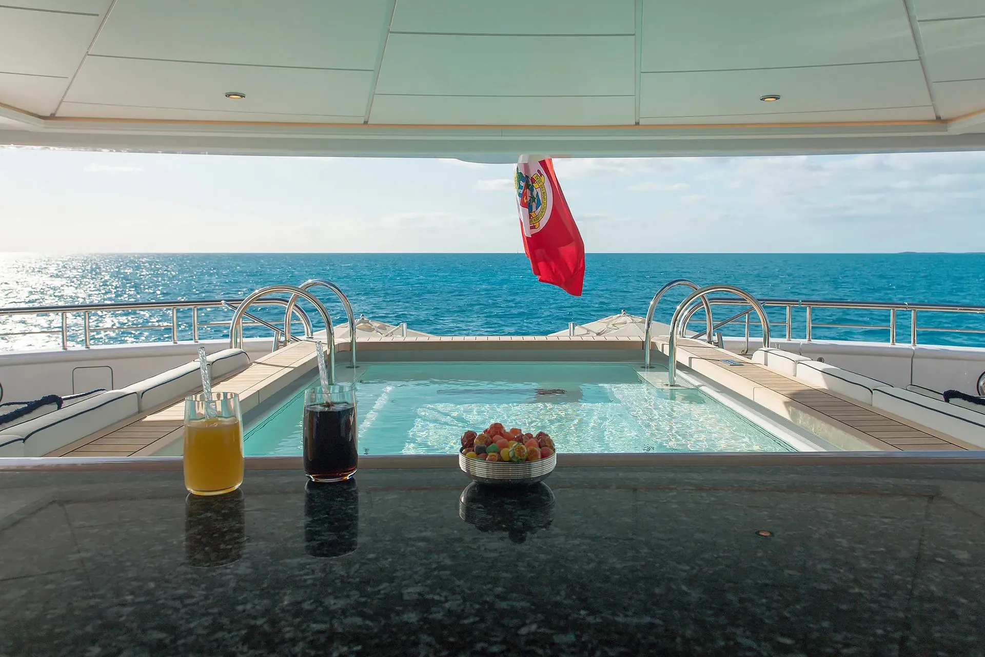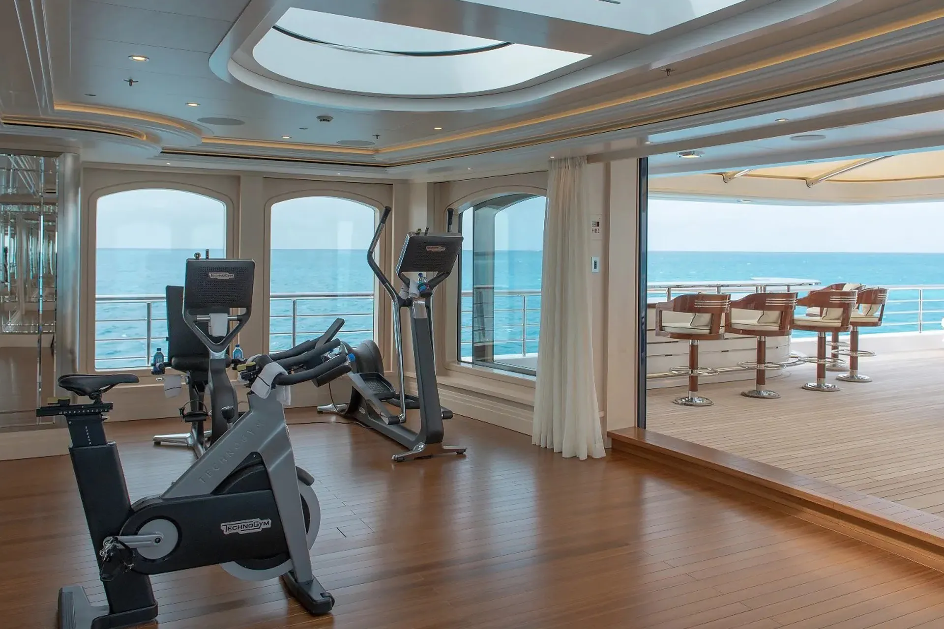 Her features include beauty salon, underwater lights, gym, deck jacuzzi, WiFi and air conditioning.