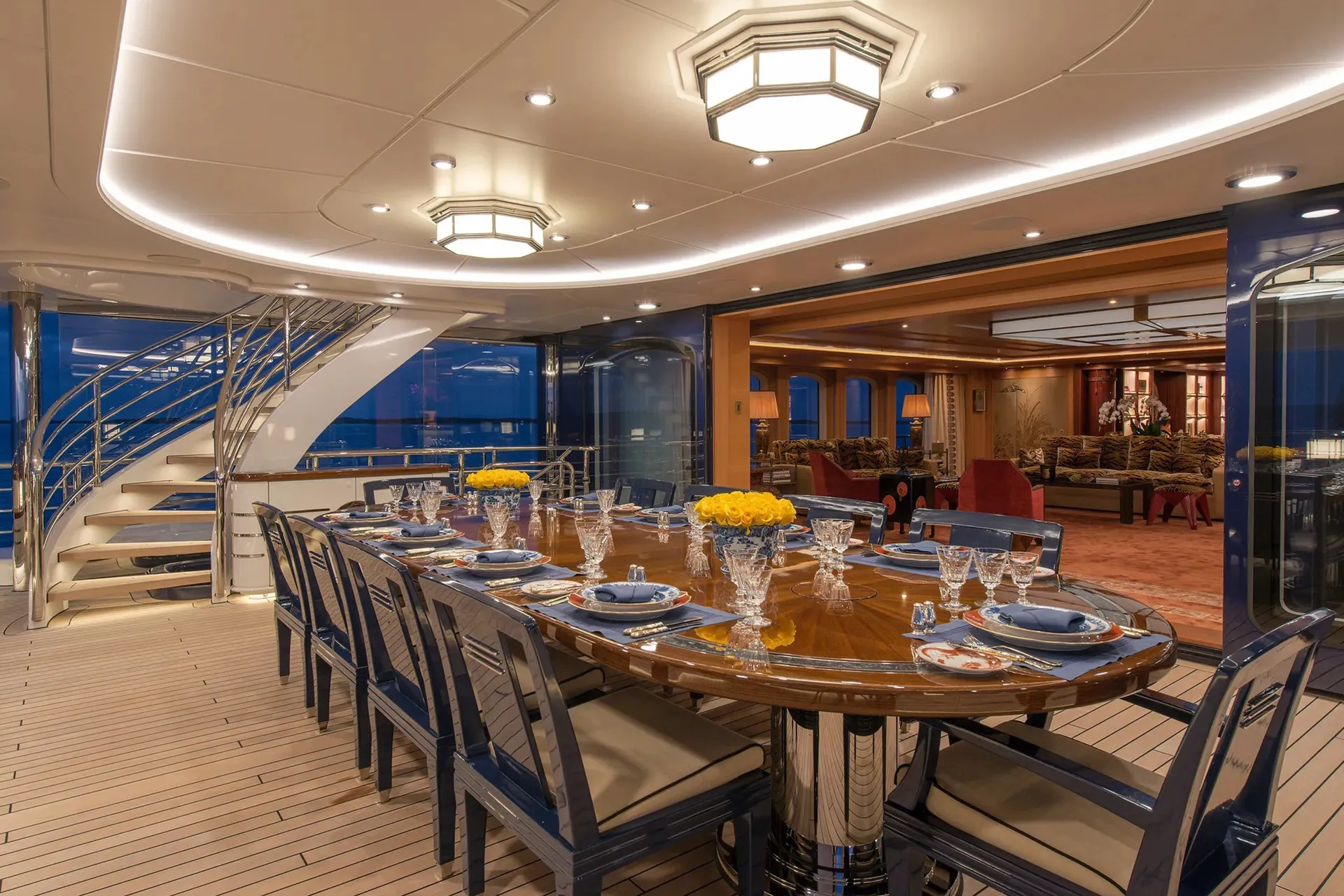 Aurora has been designed to comfortably accommodate up to 14 guests in 7 suites. She is also capable of carrying up to 21 crew onboard to ensure a relaxed luxury yacht experience.