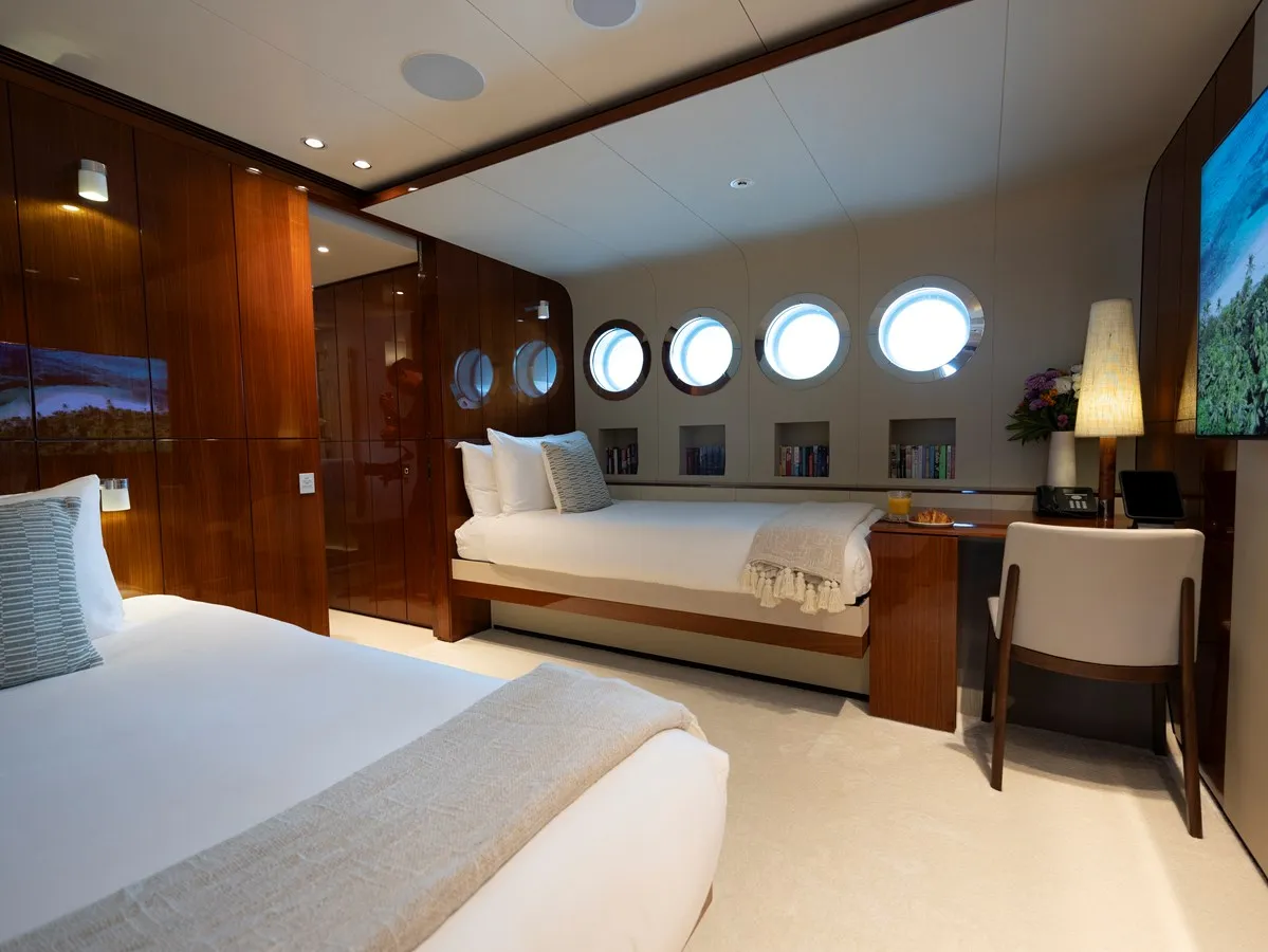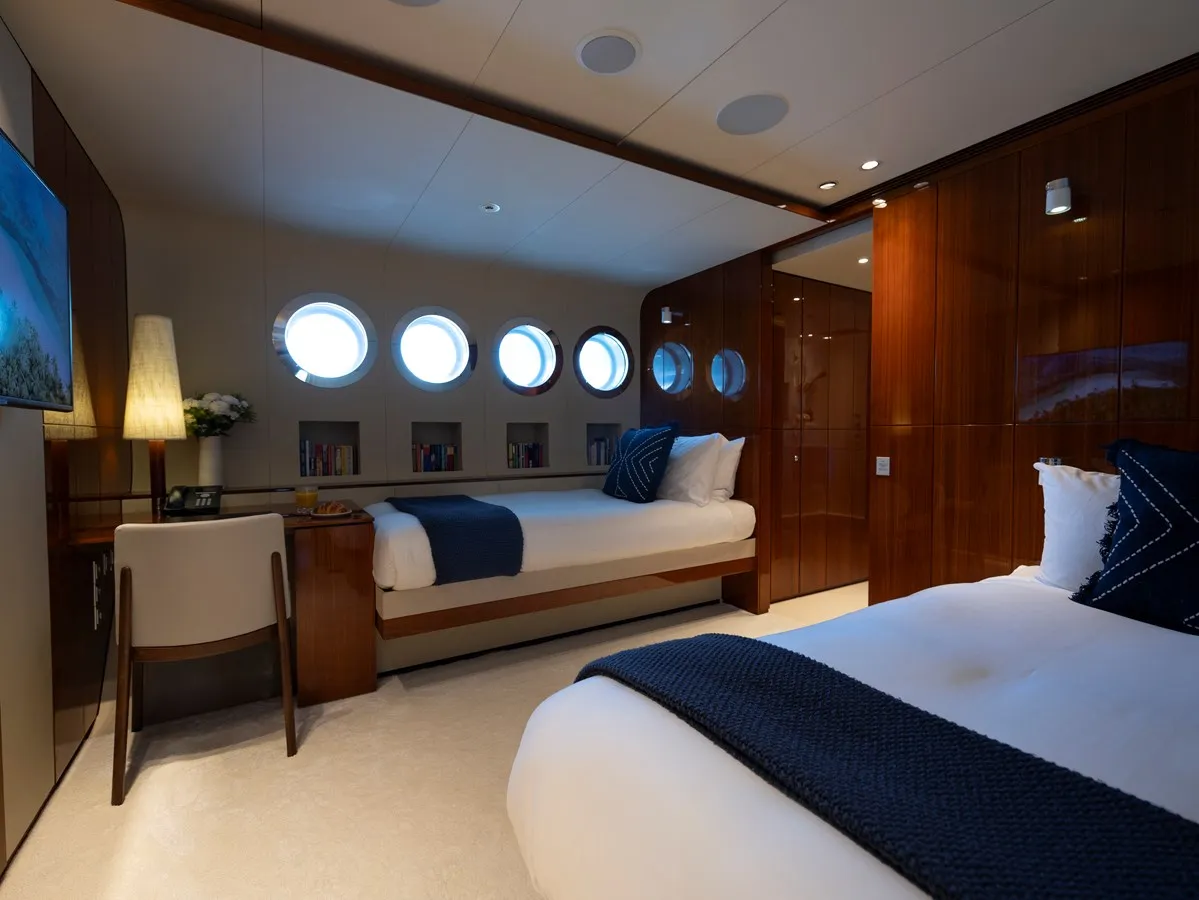 Her features include a dancefloor, movie theatre, sauna, beach club, gym, deck jacuzzi, WiFi and air conditioning.