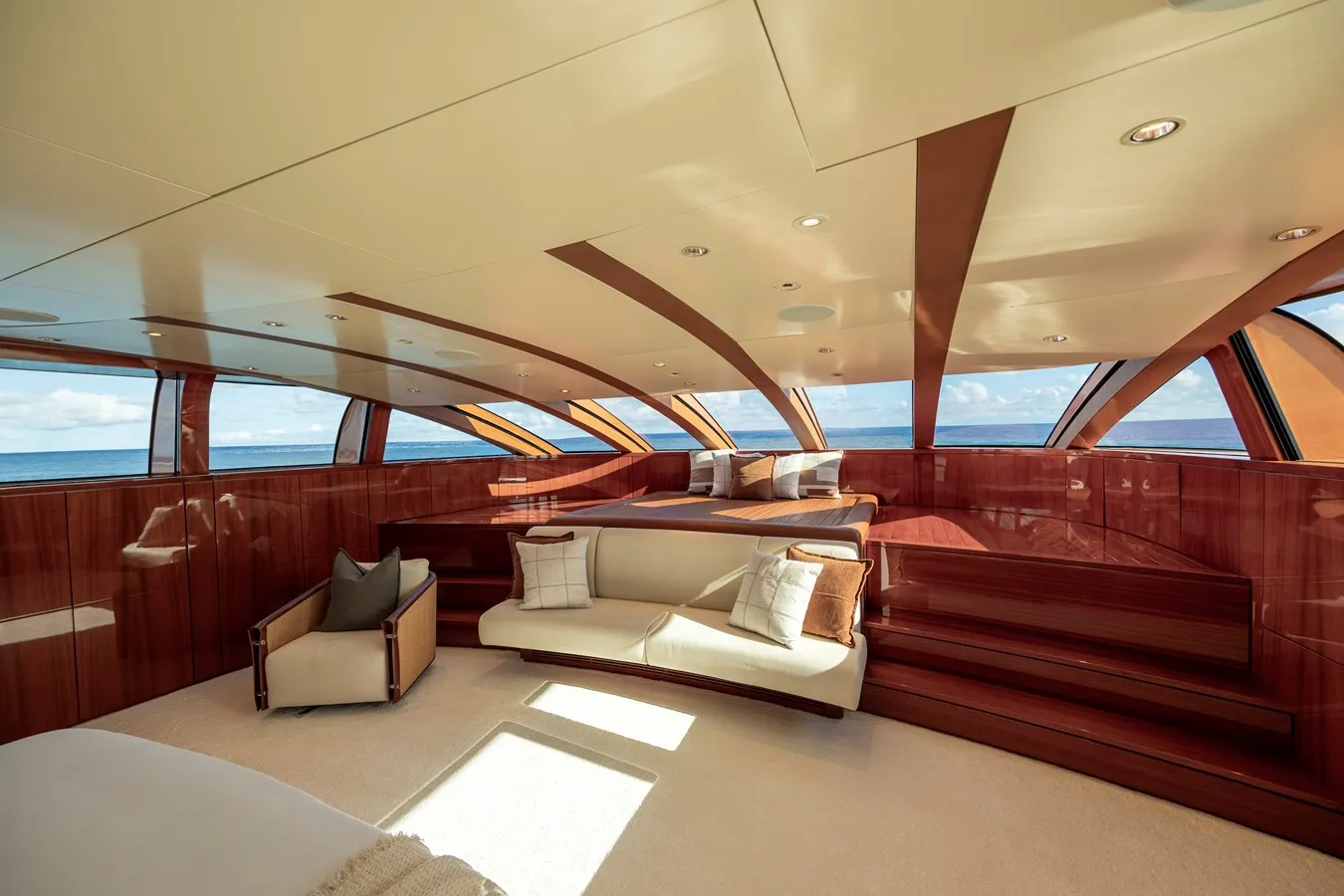 Dragonfly has been designed to comfortably accommodate up to 18 guests in 9 suites comprising three VIP cabins. She is also capable of carrying up to 16 crew onboard to ensure a relaxed luxury yacht experience.