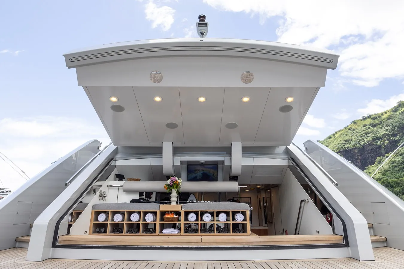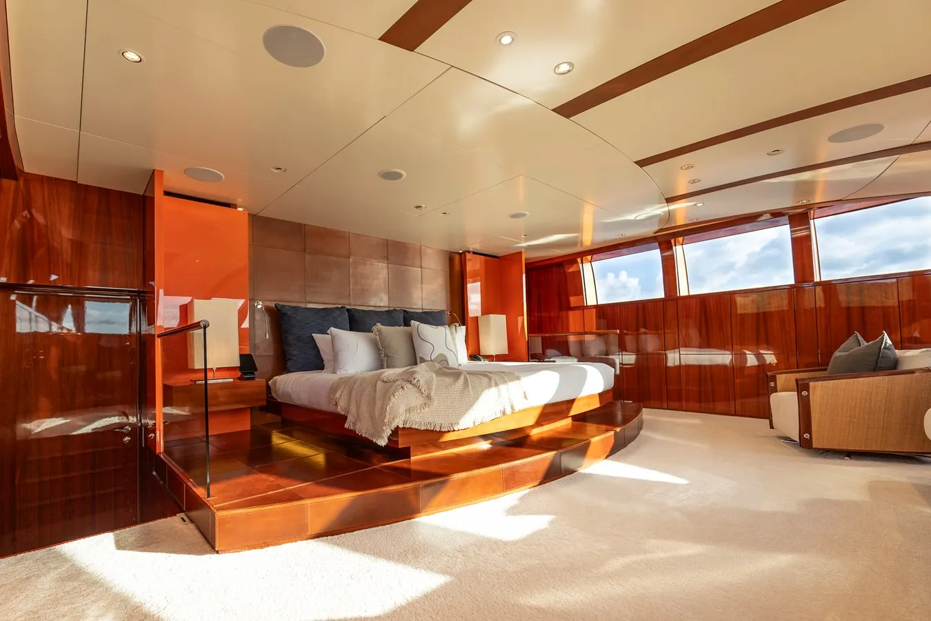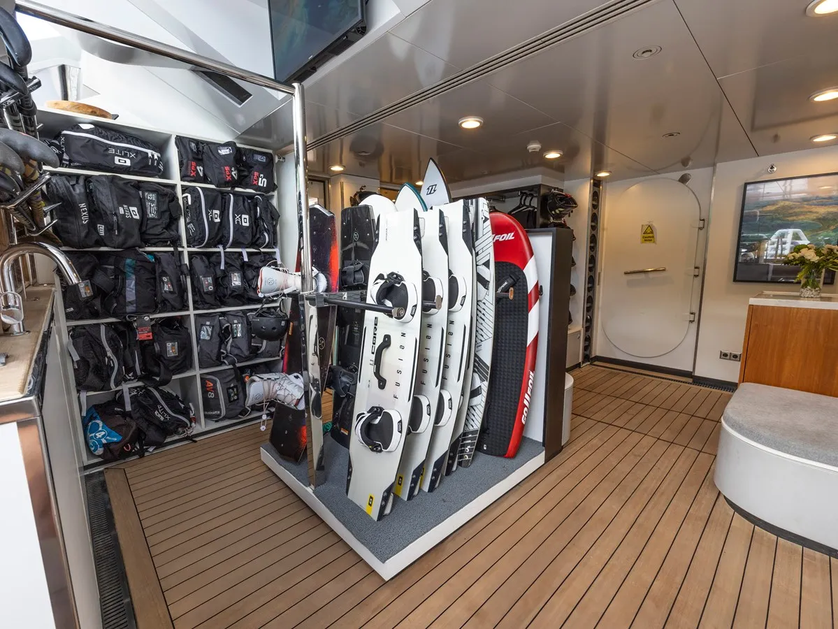 Her features include a dancefloor, movie theatre, sauna, beach club, gym, deck jacuzzi, WiFi and air conditioning.