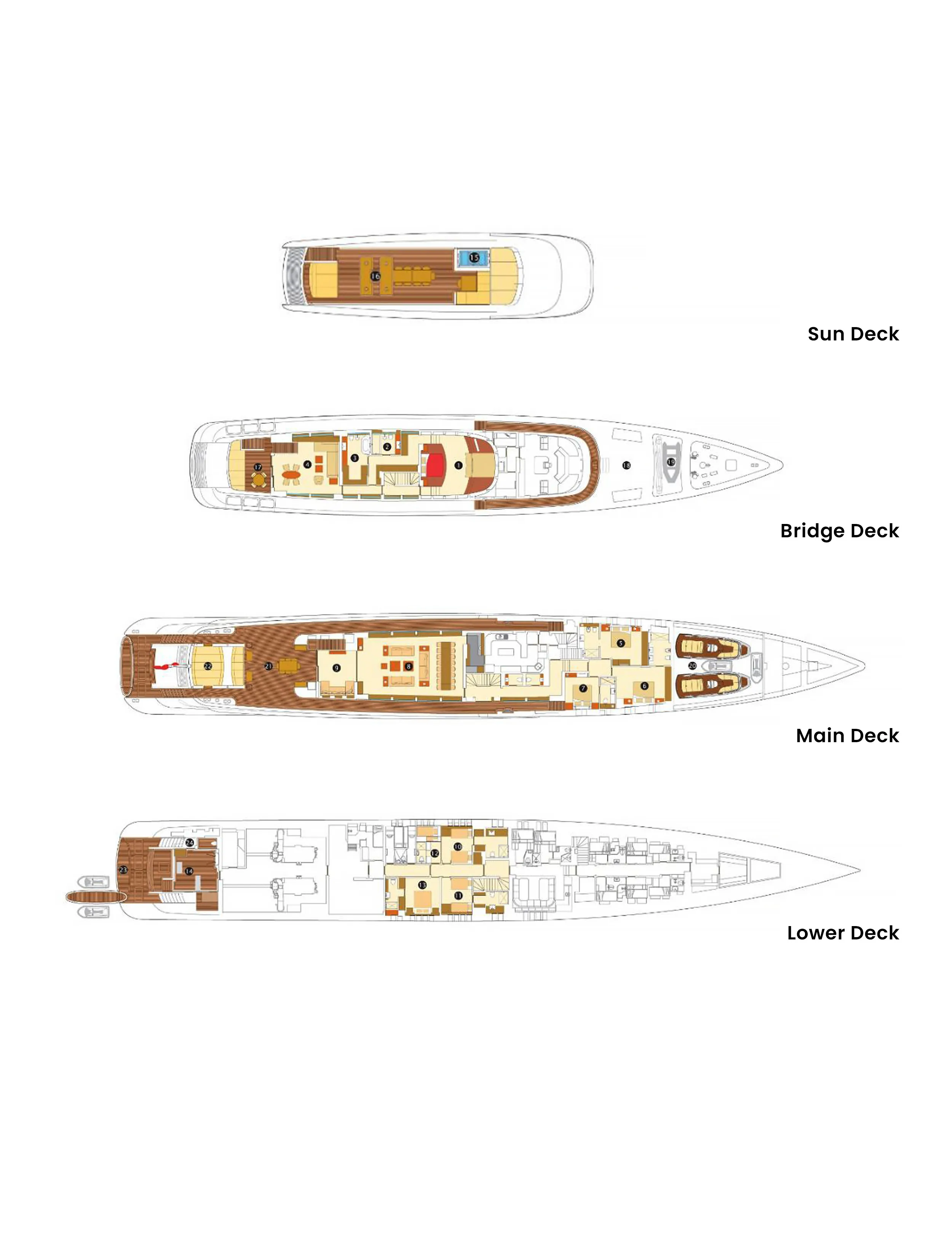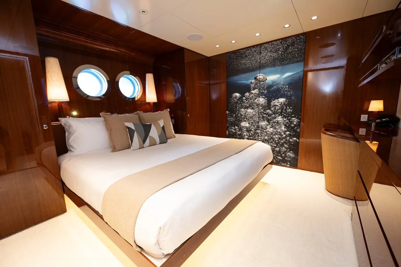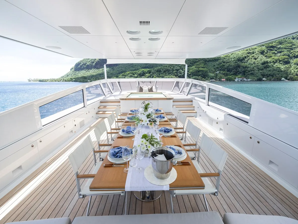 Dragonfly has been designed to comfortably accommodate up to 18 guests in 9 suites comprising three VIP cabins. She is also capable of carrying up to 16 crew onboard to ensure a relaxed luxury yacht experience.