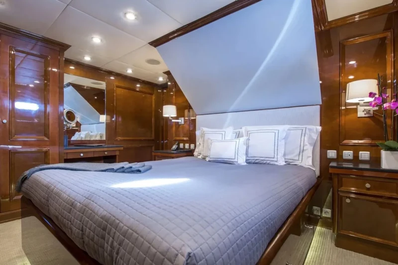 De De has been designed to comfortably accommodate up to 10 guests in 5 suites. She is also capable of carrying up to 10 crew onboard to ensure a relaxed luxury yacht experience.