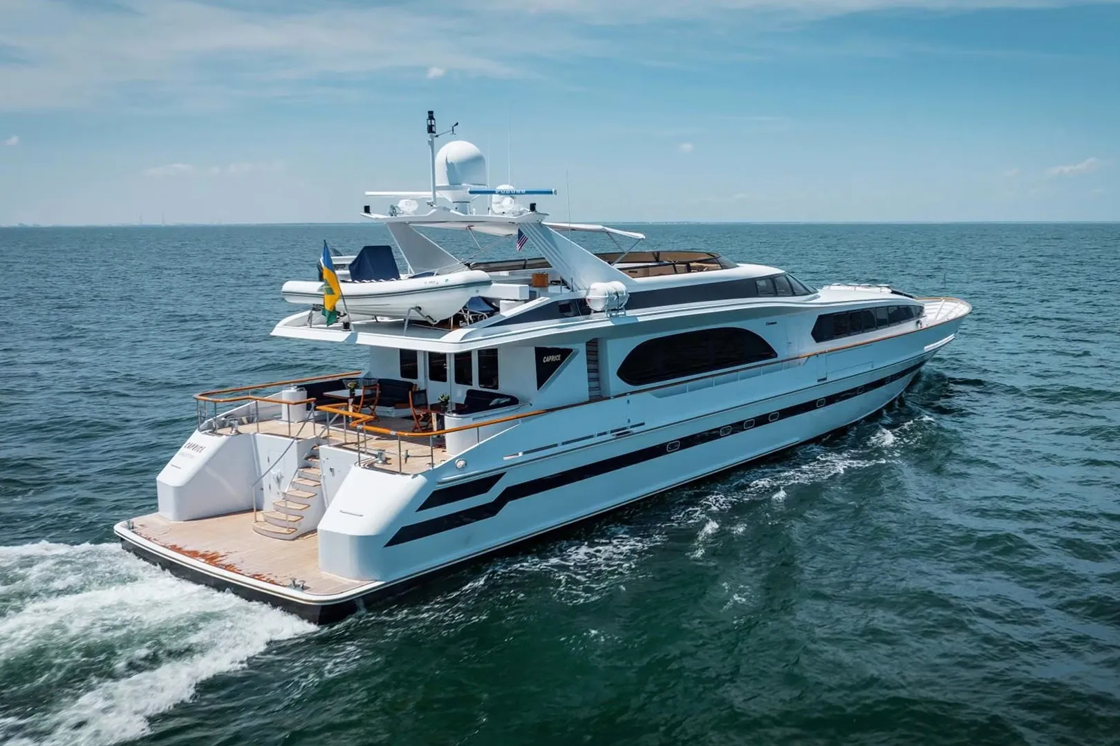 Caprice has been designed to comfortably accommodate up to 8 guests in 4 suites. She is also capable of carrying up to 6 crew onboard to ensure a relaxed luxury yacht experience.