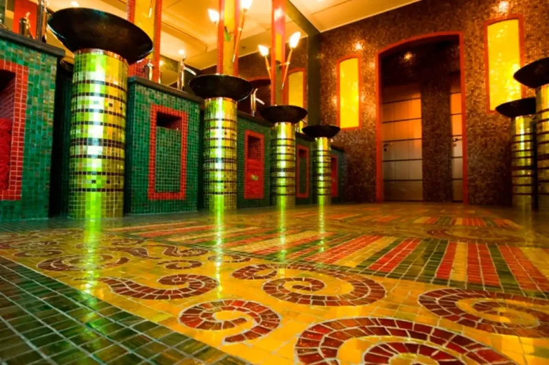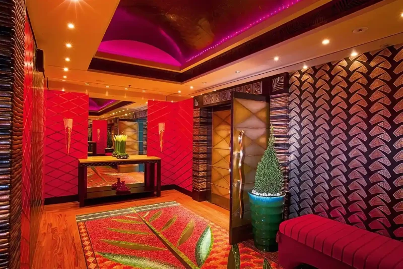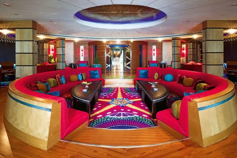 Her features include a dancefloor, spa, beauty salon, elevator and gym.