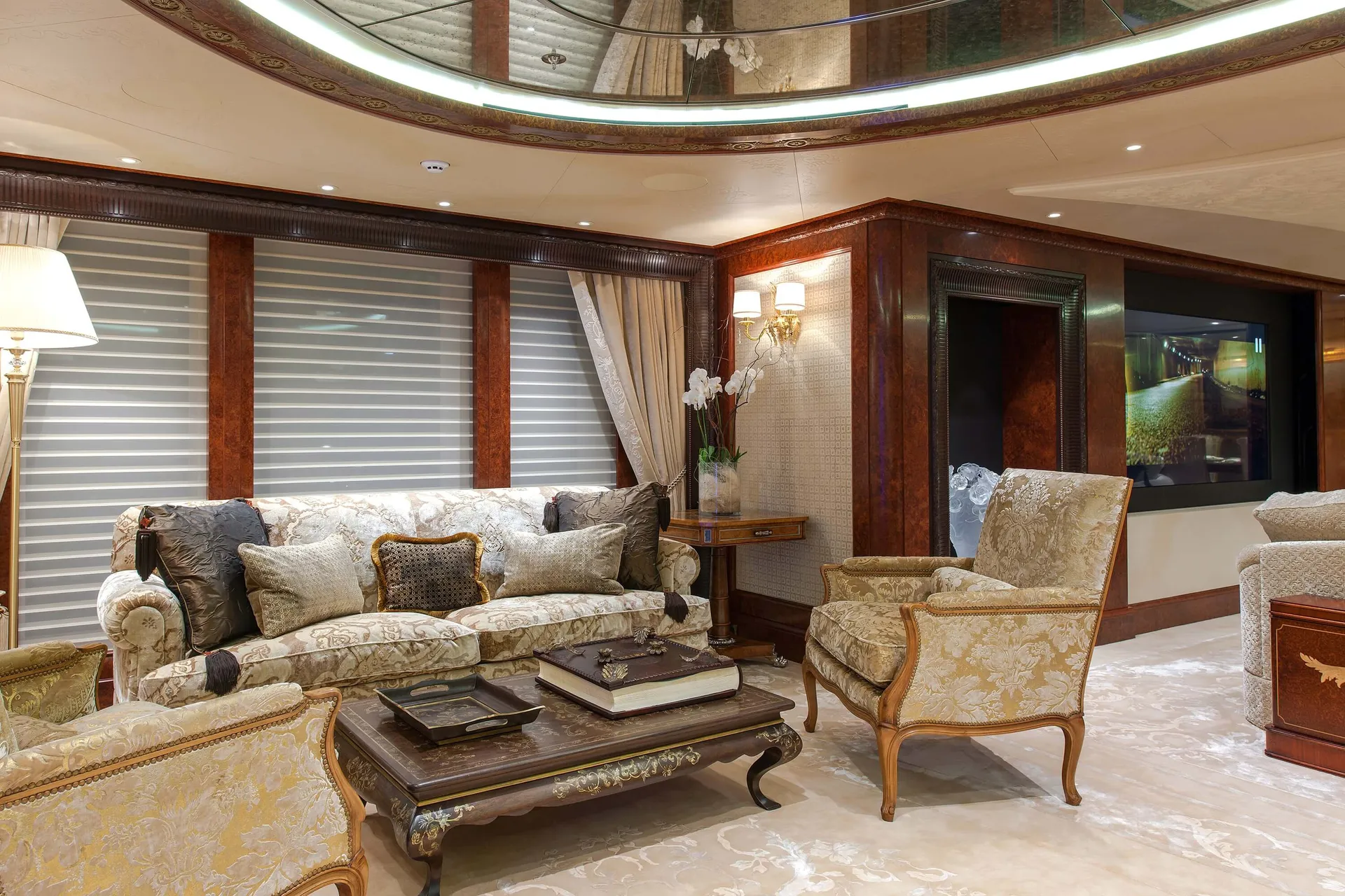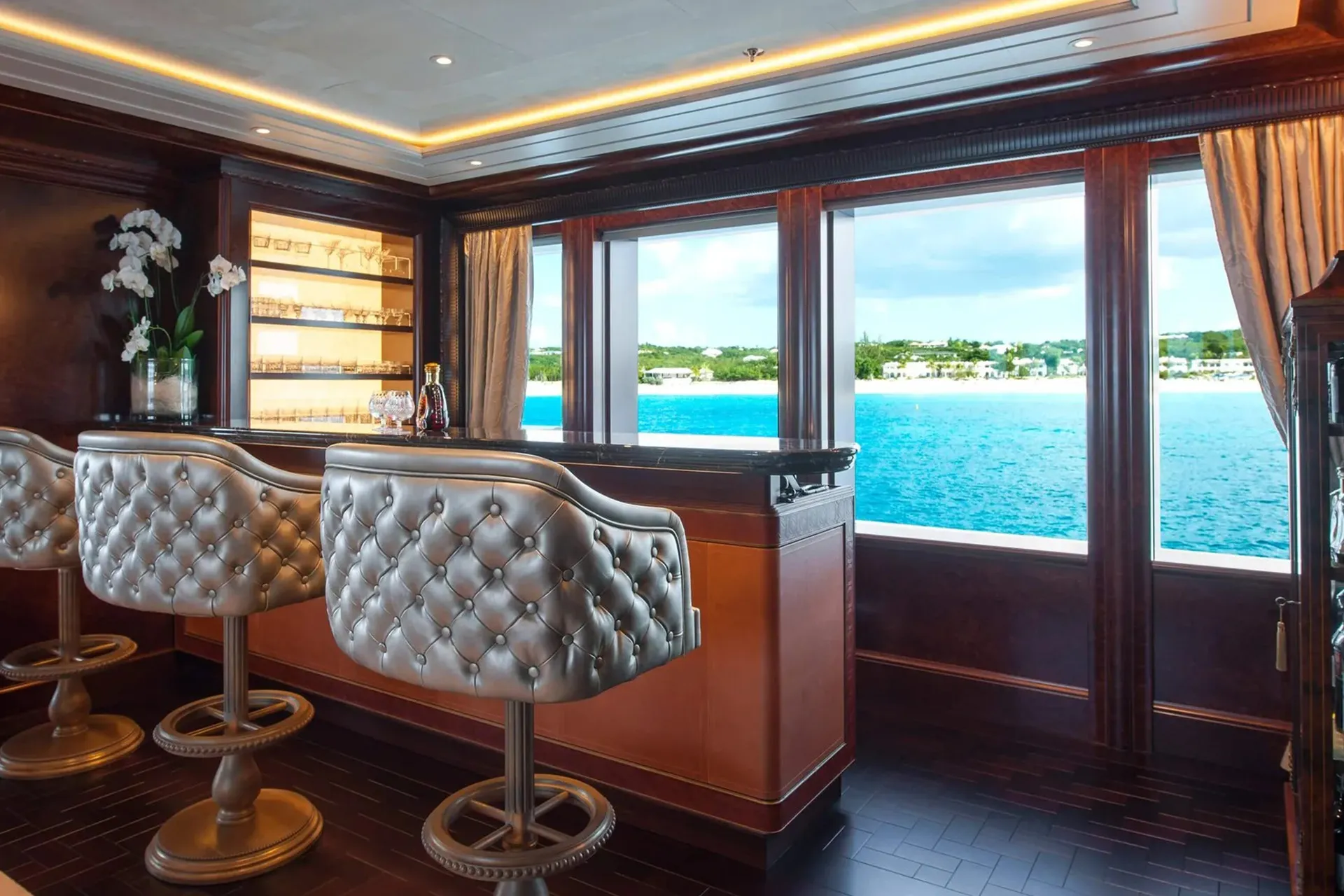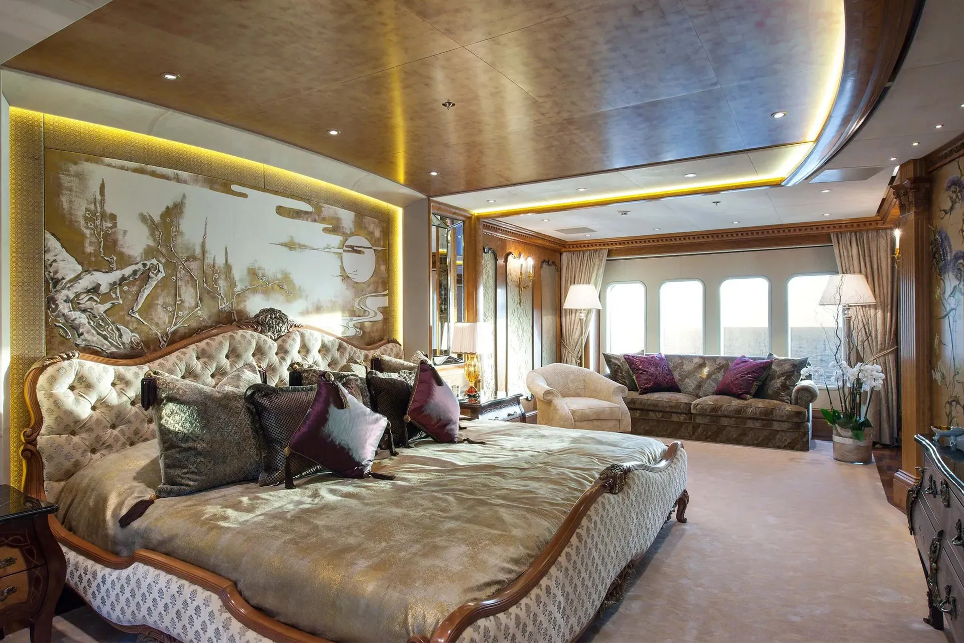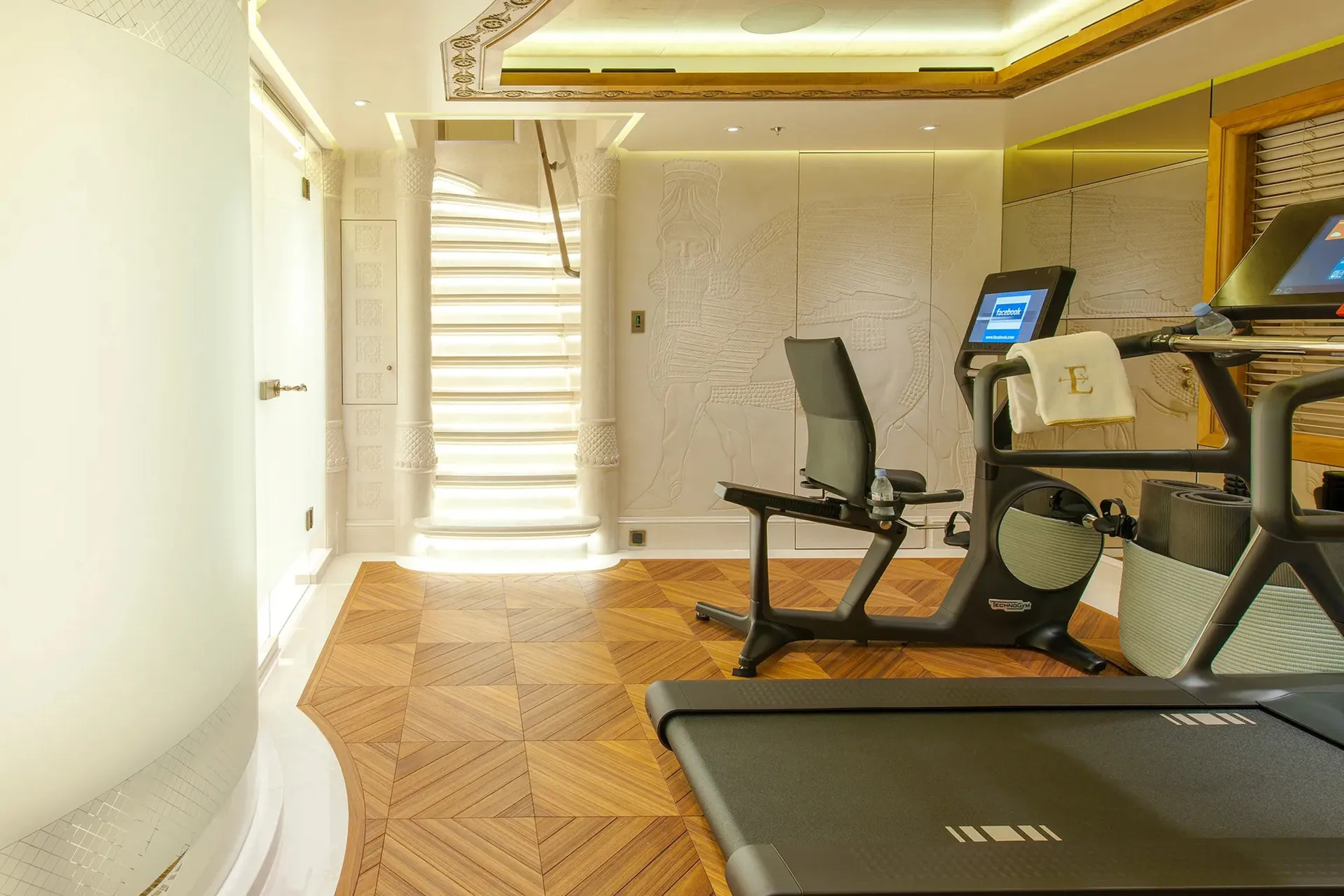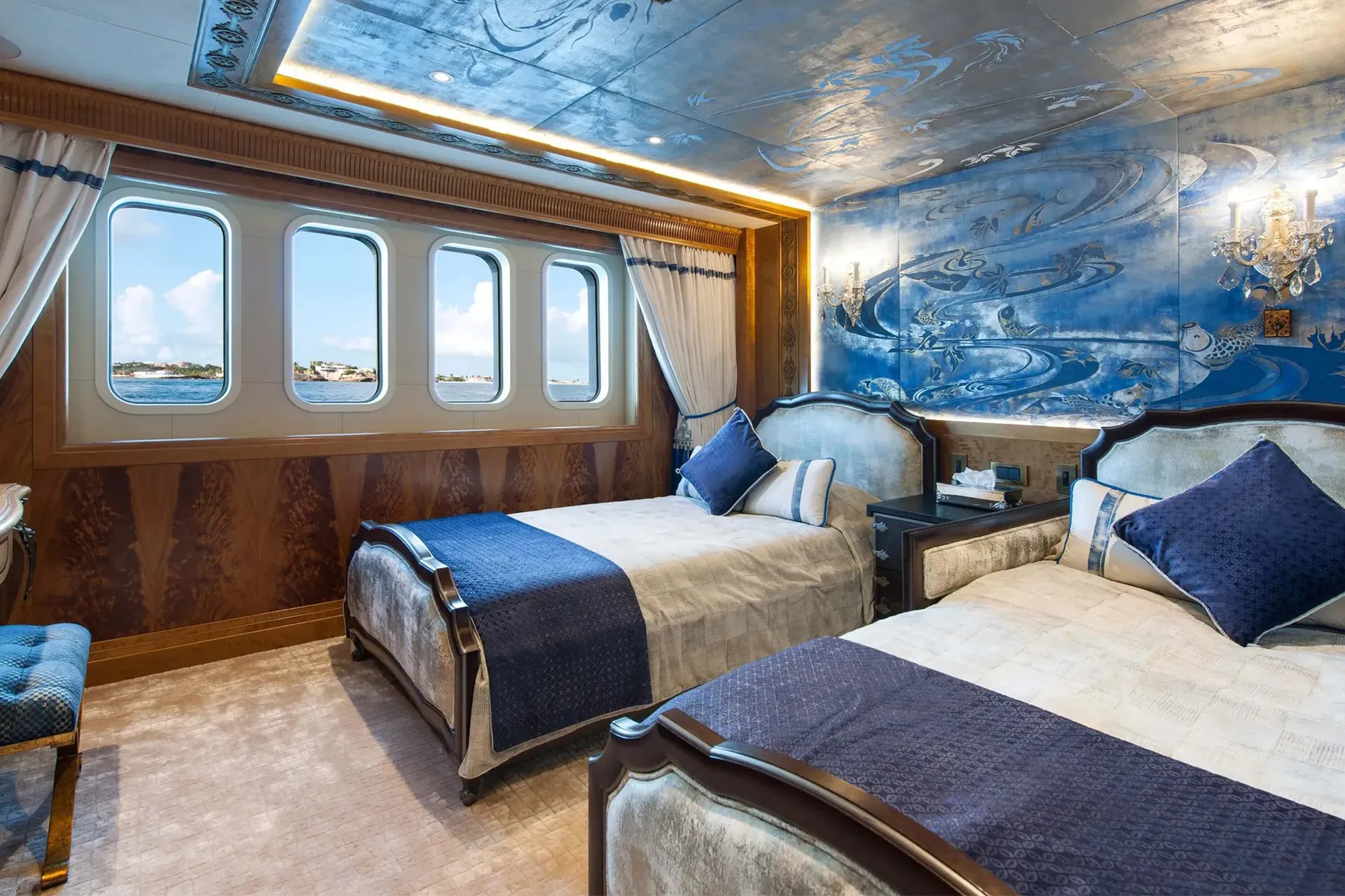 Her features include beauty salon, underwater lights, gym, WiFi and air conditioning.