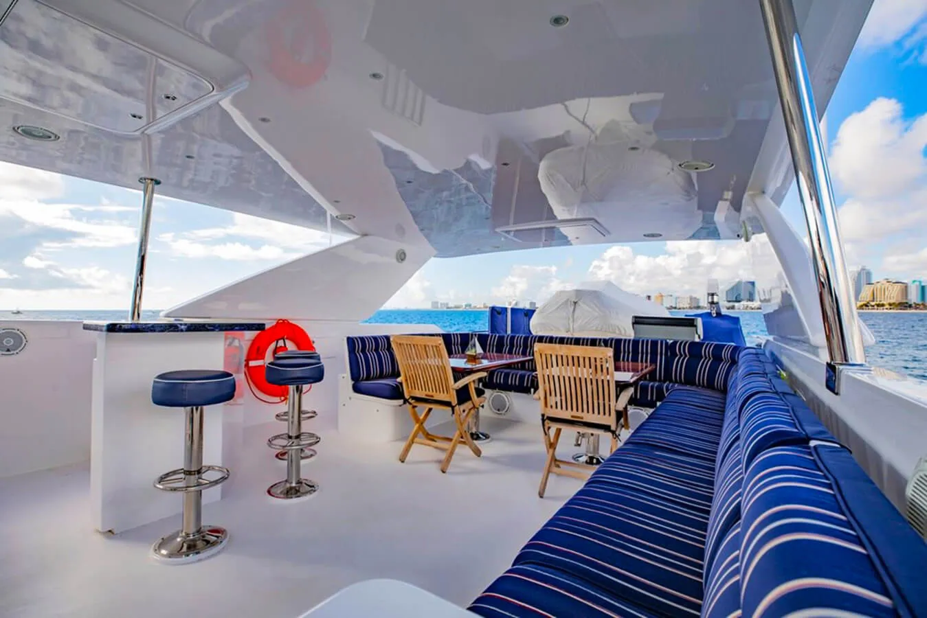 Fly Boys has been designed to comfortably accommodate up to 8 guests in 4 suites comprising one VIP cabin. She is also capable of carrying up to 5 crew onboard to ensure a relaxed luxury yacht experience.