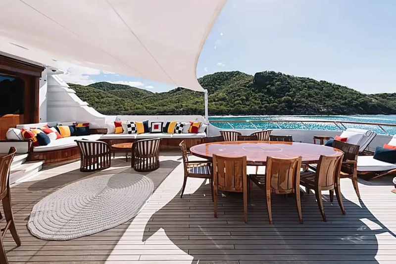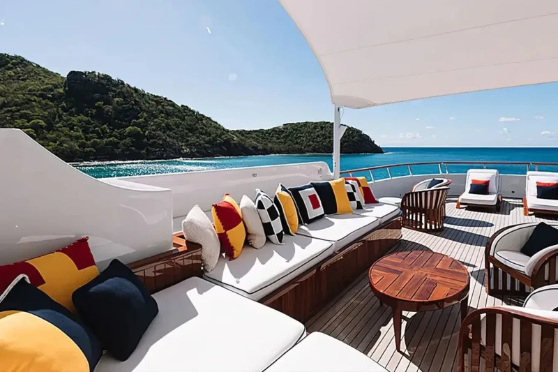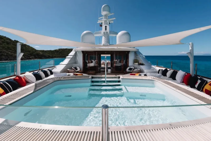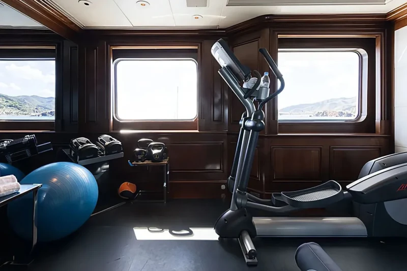A charter on Flag is comfortable and convenient thanks to the provided amenities such as a gym with all the latest equipment to maintain your fitness routine. Soak up the bubbles in style in the deck jacuzzi.
