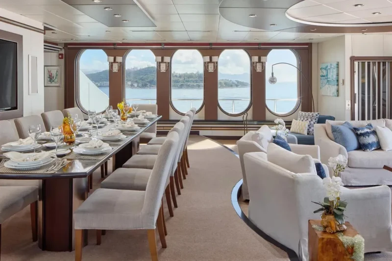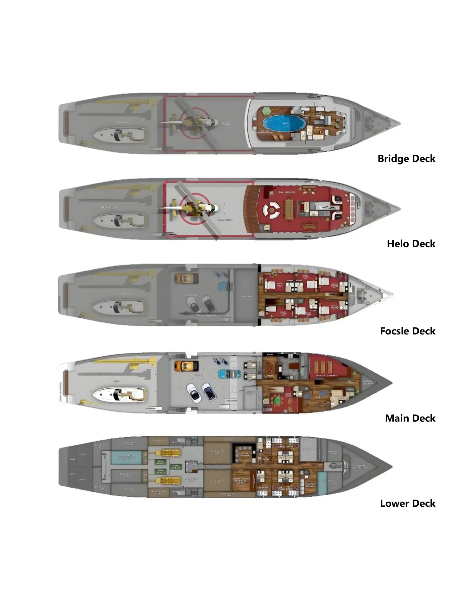 Built in 2007, Global offers guest accommodation for up to 12 guests in 6 suites comprising a master suite, four double cabins and one twin cabin. There are 7 beds in total, including 5 queen and 2 singles. She is also capable of carrying up to 13 crew onboard to ensure a relaxed luxury yacht charter experience.