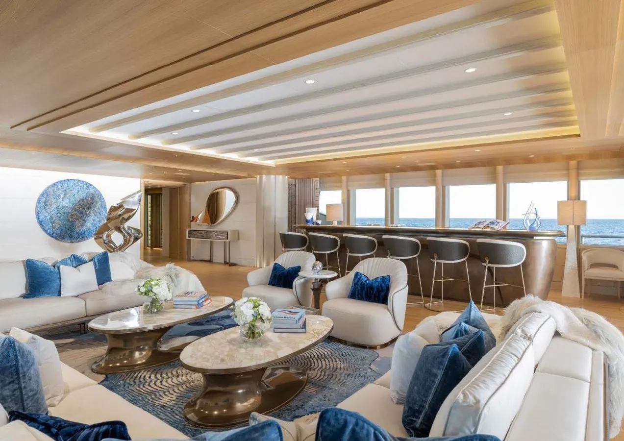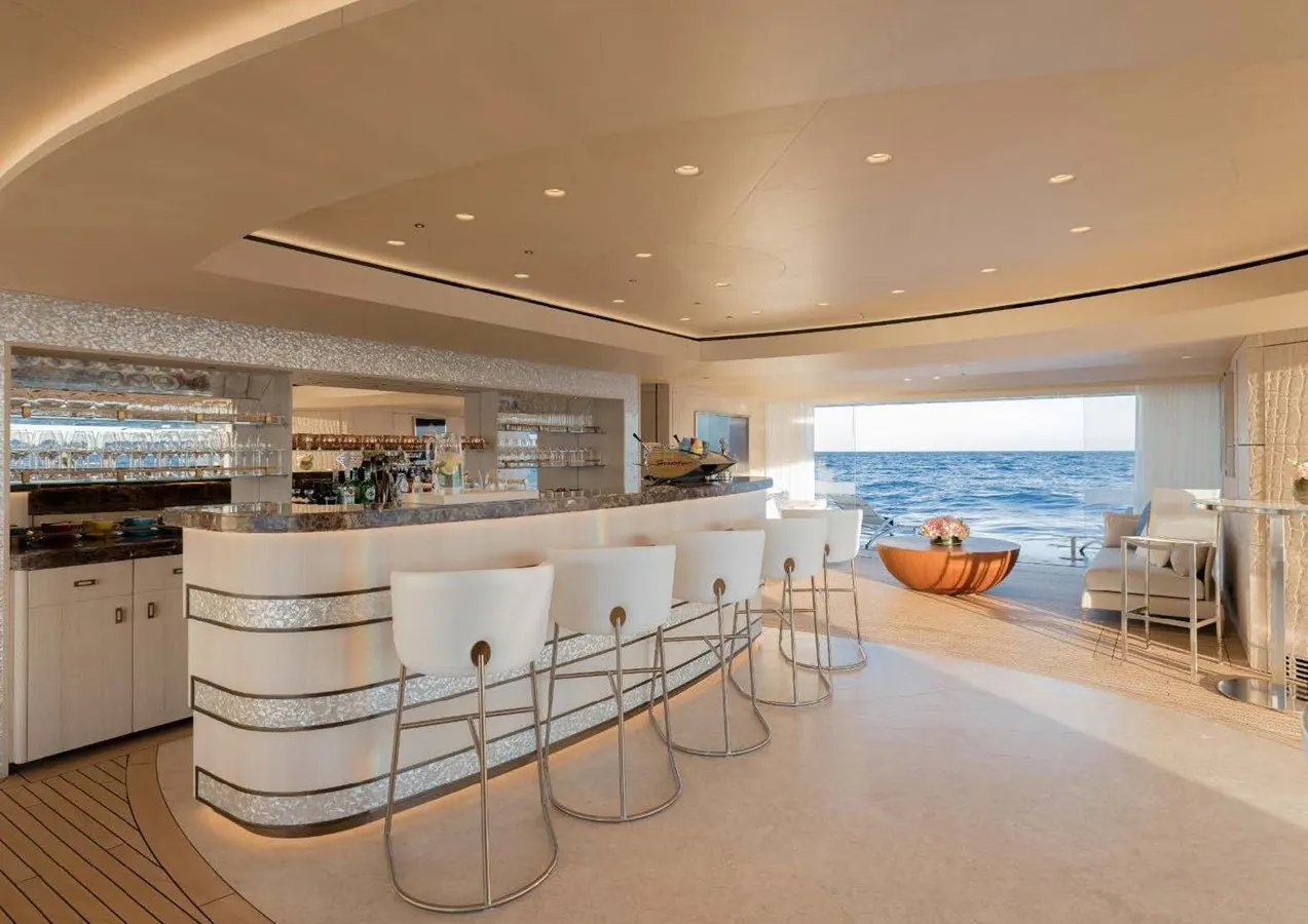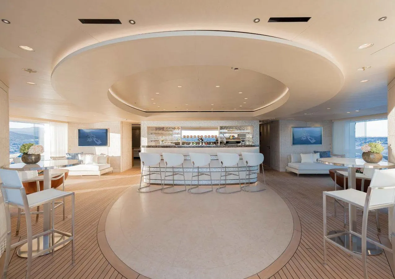 Her features include piano, spa, beauty salon, satellite communications, underwater lights, beach club, gym, deck jacuzzi, WiFi and air conditioning.