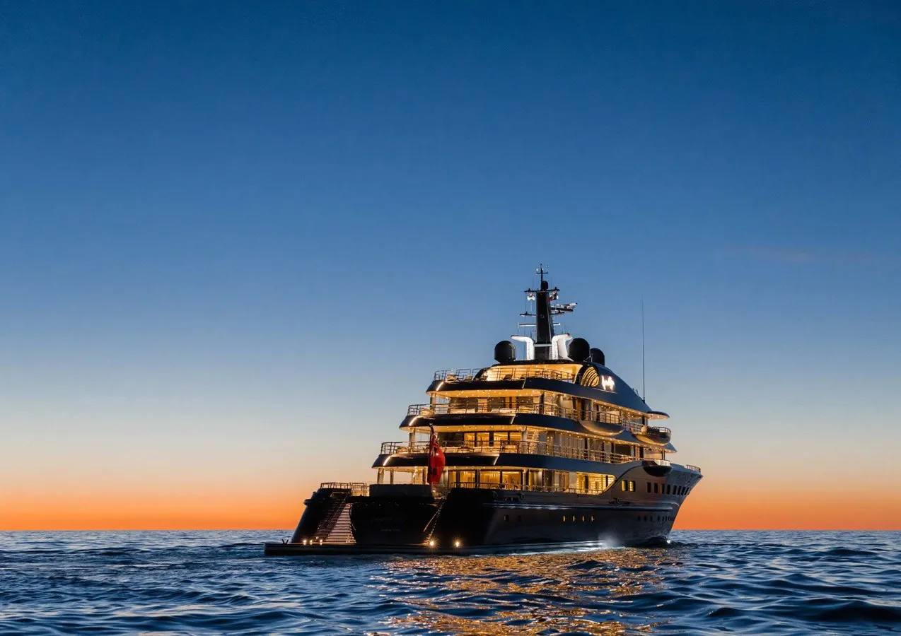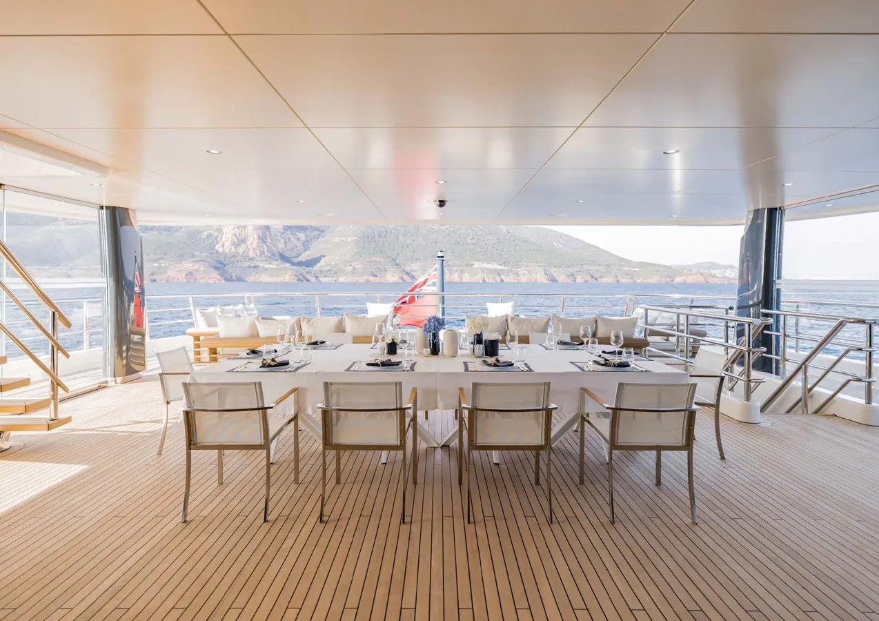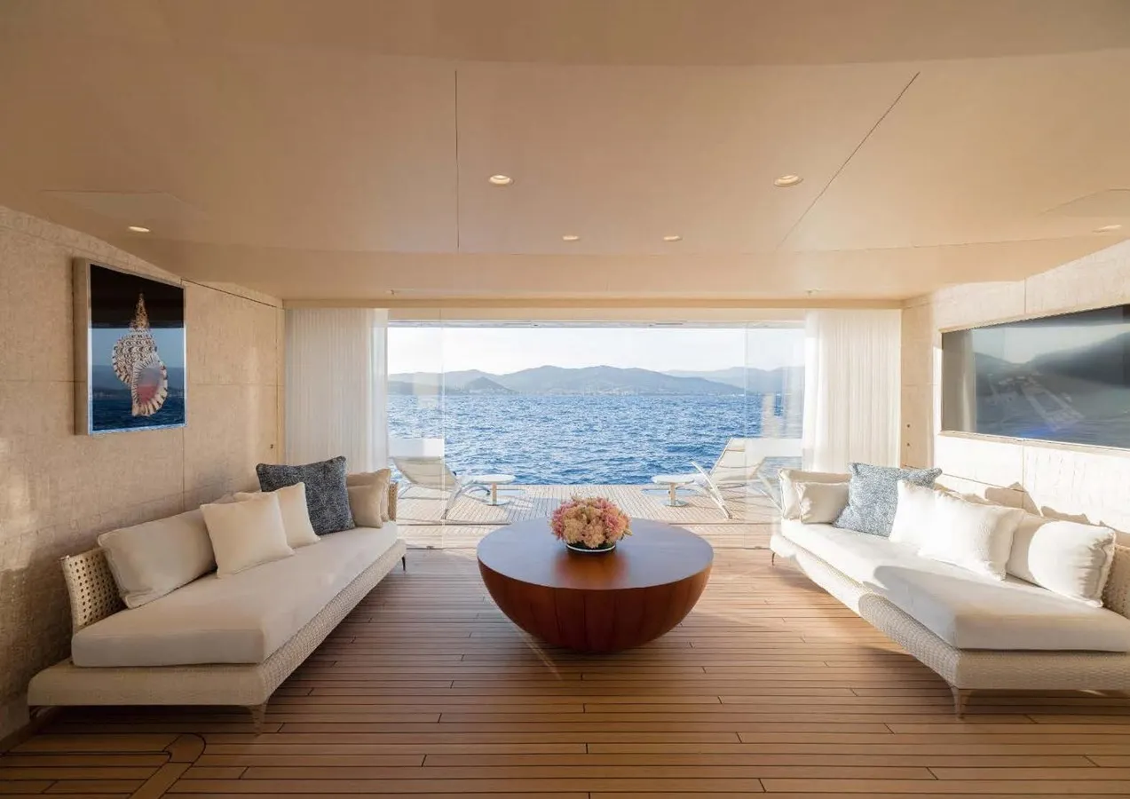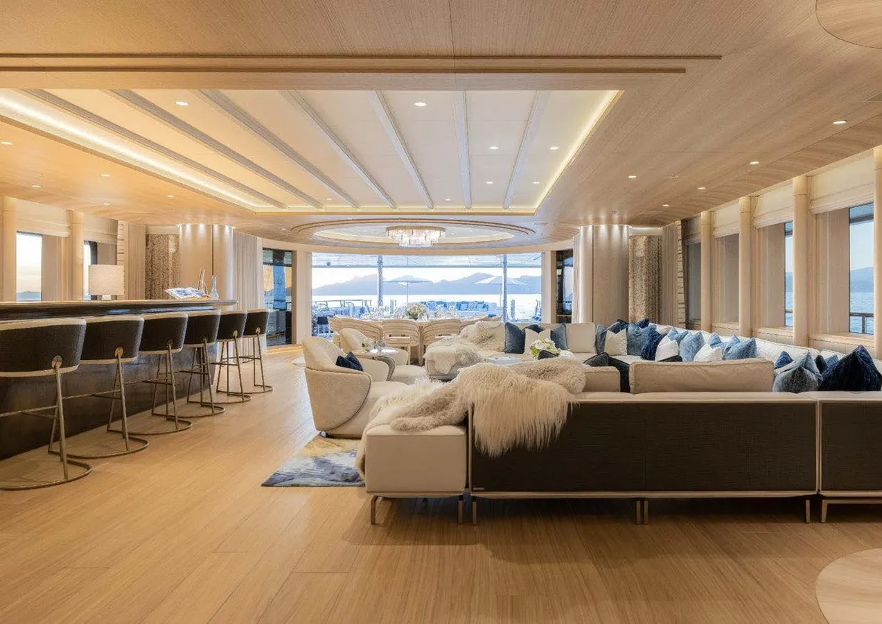 Her features include piano, spa, beauty salon, satellite communications, underwater lights, beach club, gym, deck jacuzzi, WiFi and air conditioning.