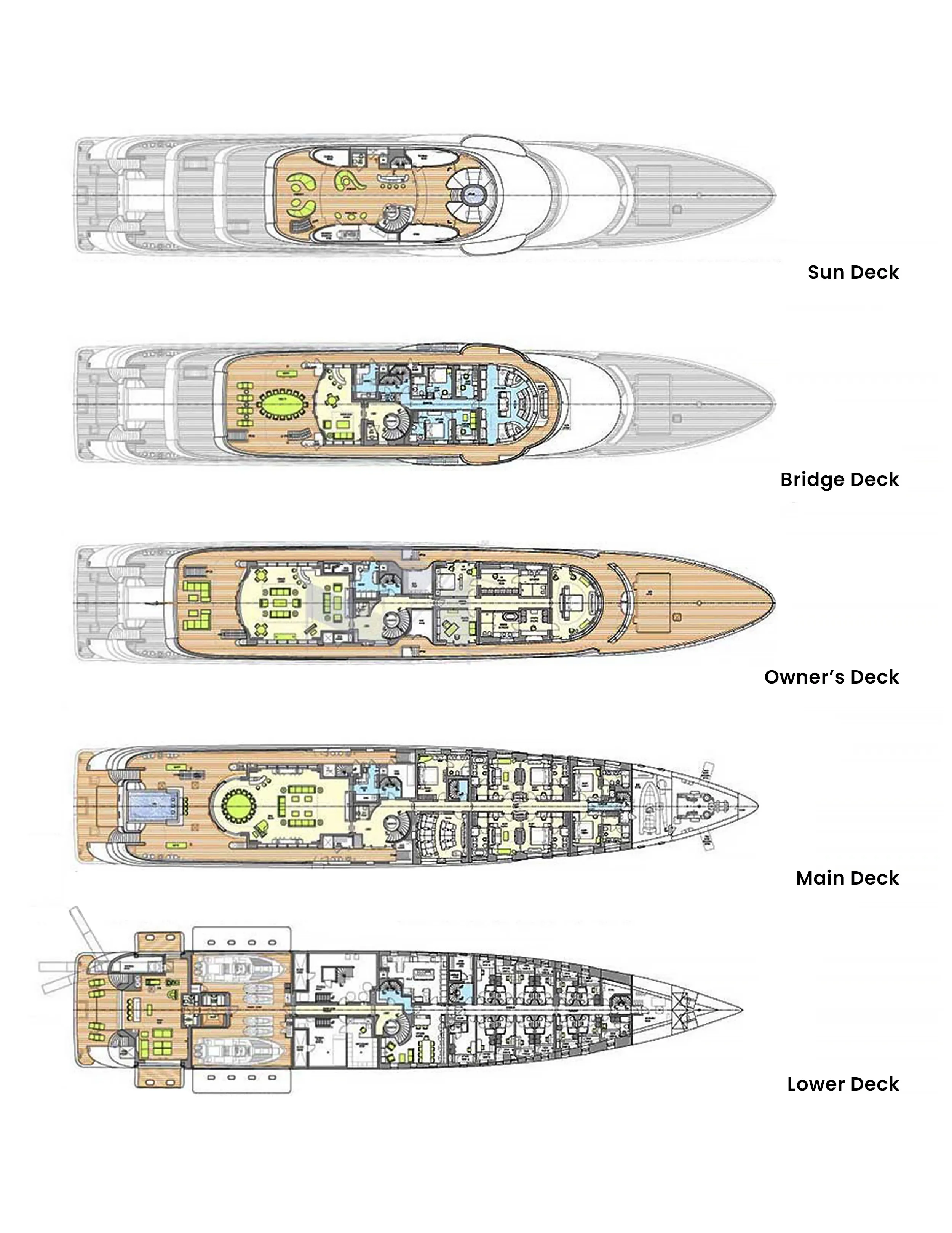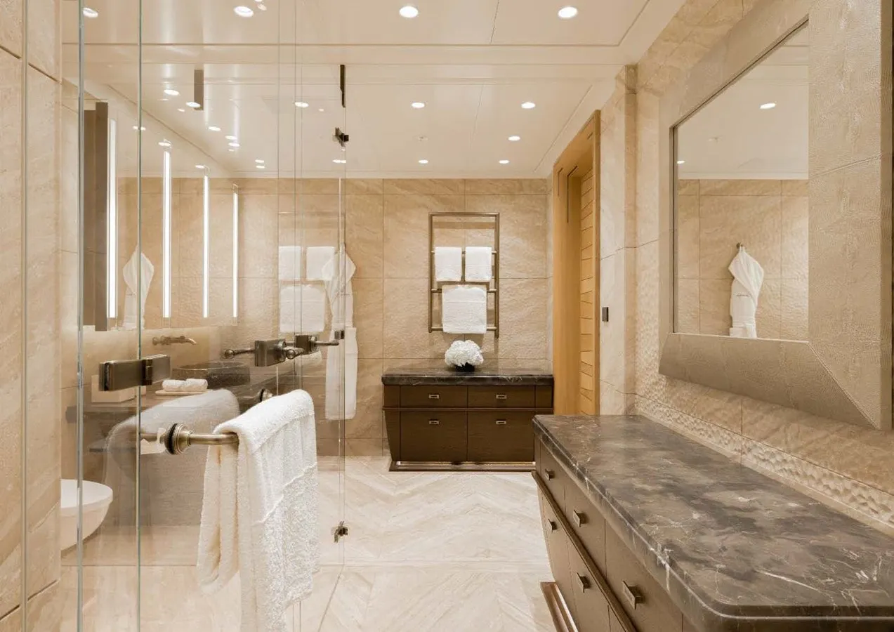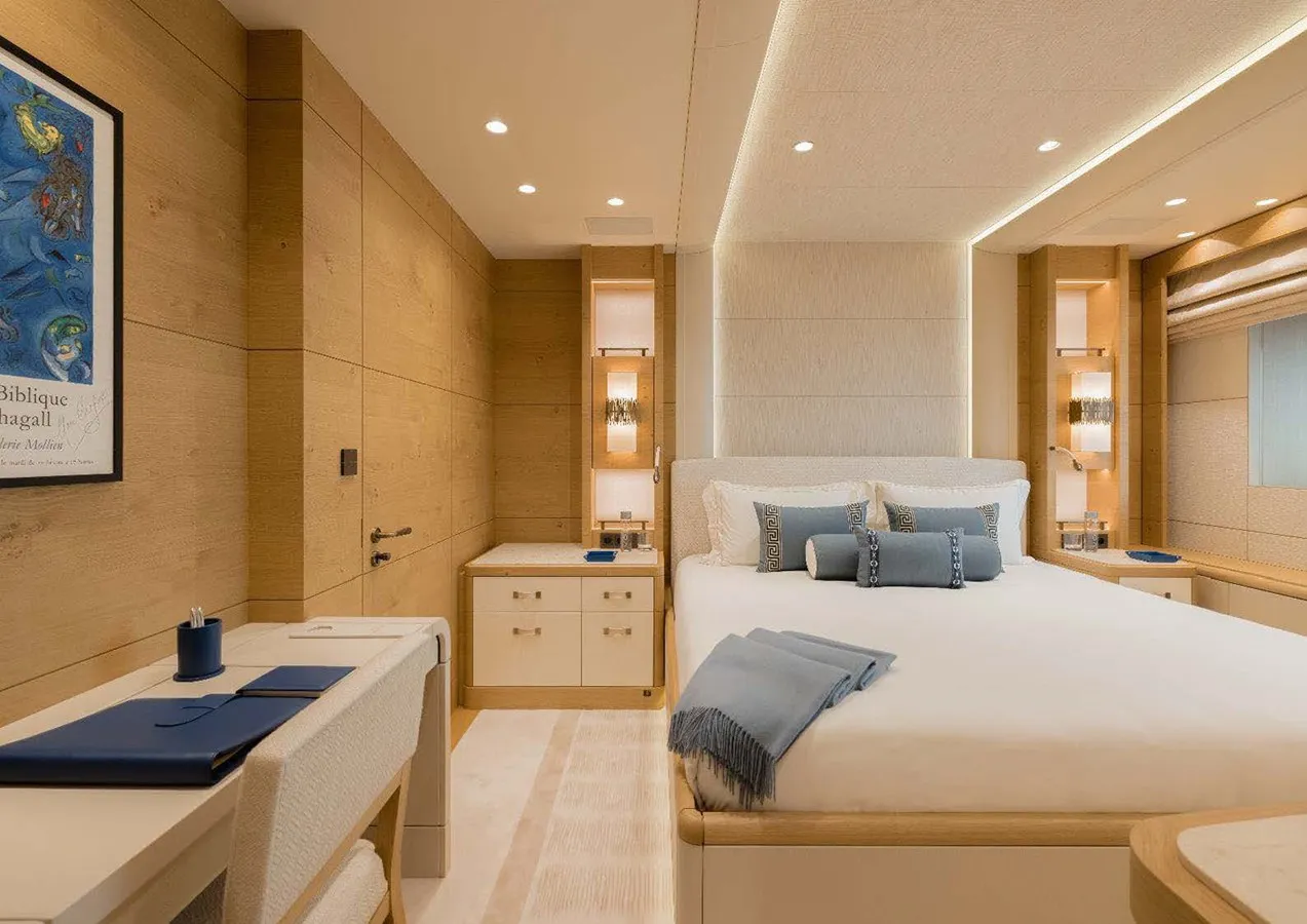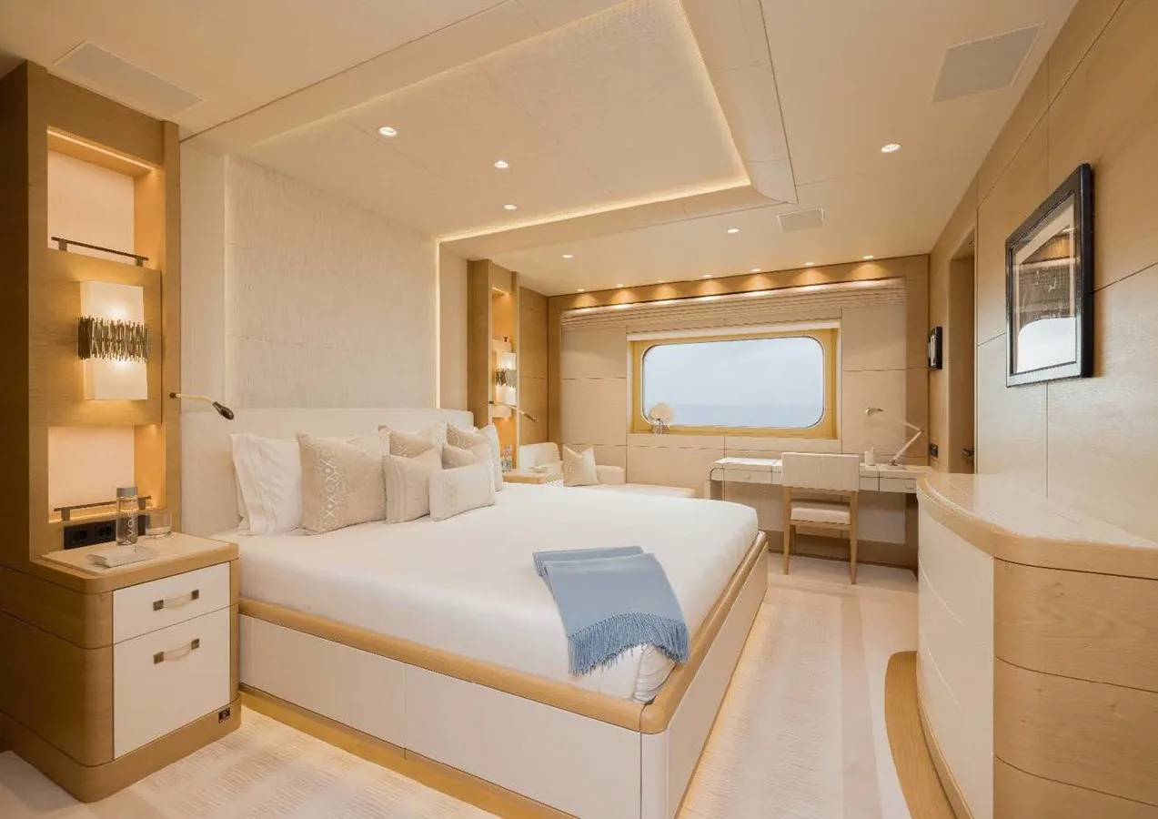 Here Comes The Sun has been designed to comfortably accommodate up to 20 guests in 10 suites comprising two VIP cabins and two cabins that can operate as twins or doubles. She is also capable of carrying up to 27 crew onboard to ensure a relaxed luxury yacht experience.