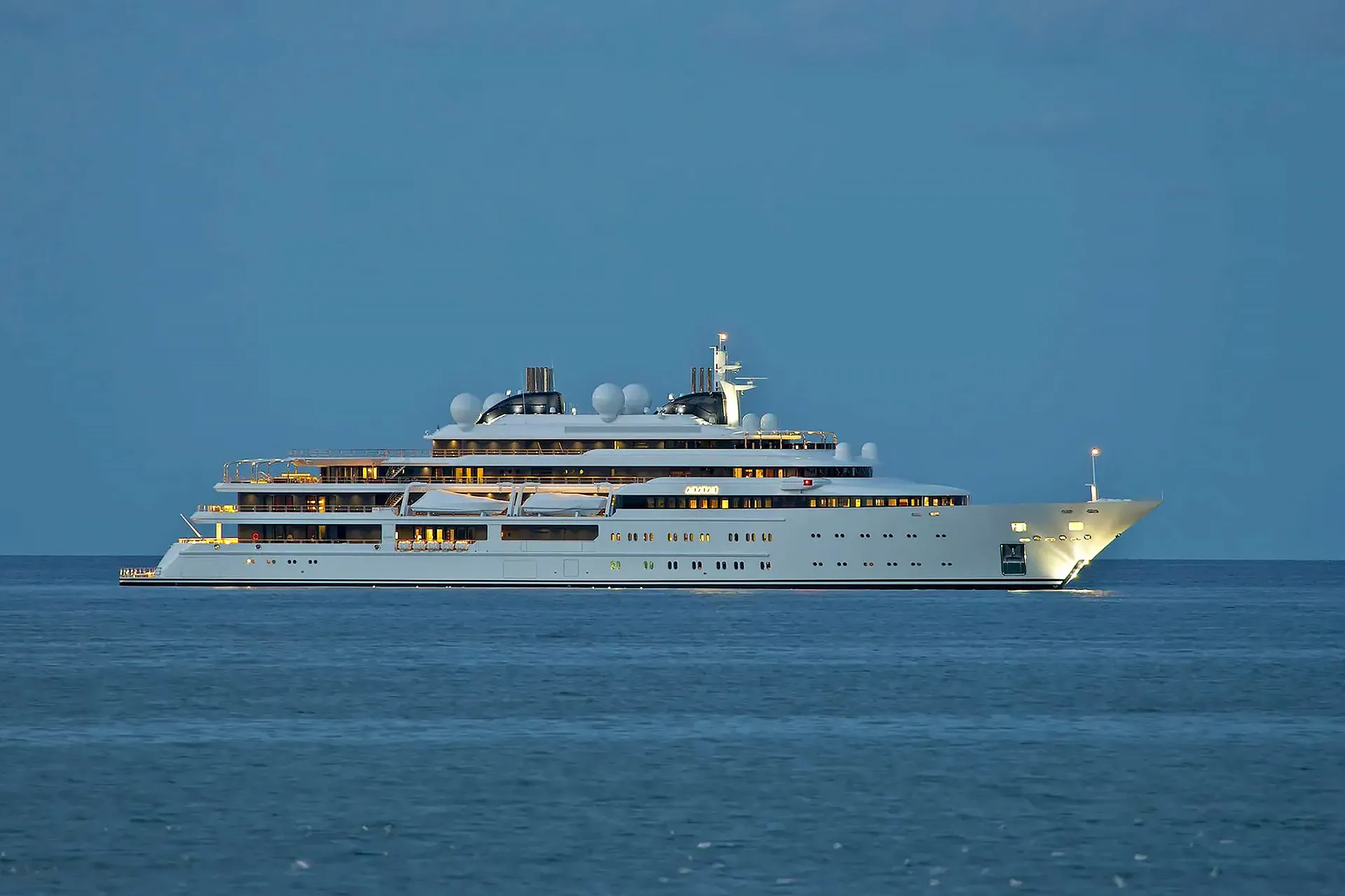 Her features include a spa, beauty salon, elevator, underwater lights, beach club and gym.