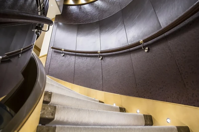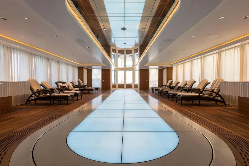 Her features include a dancefloor, beauty salon, elevator, gym and air conditioning.