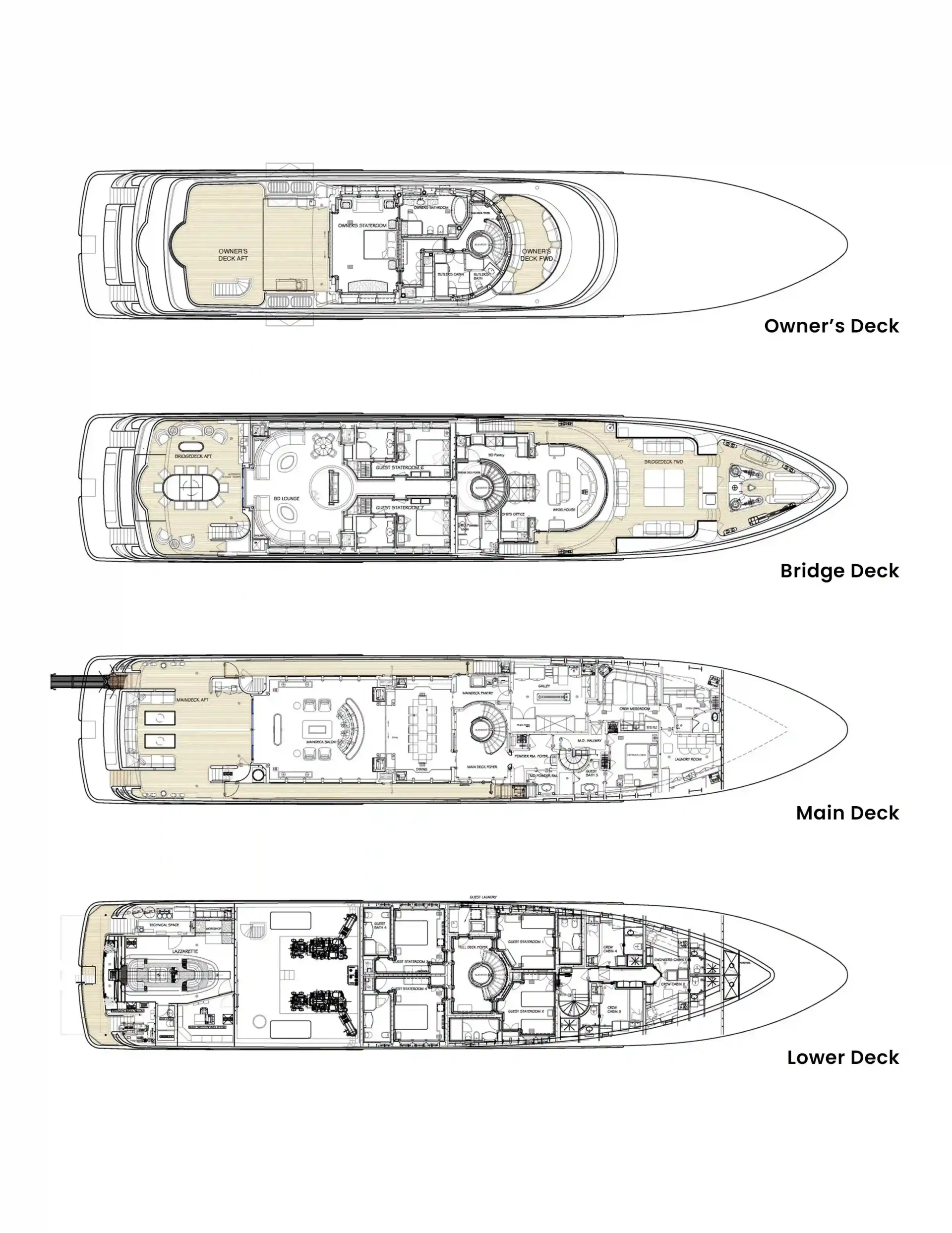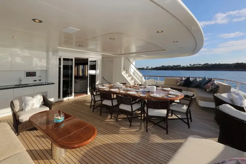 Olmida has been designed to comfortably accommodate up to 16 guests in 8 suites. She is also capable of carrying up to 9 crew onboard to ensure a relaxed luxury yacht experience.