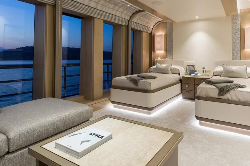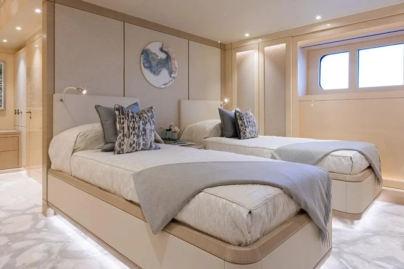 Neninka has been designed to comfortably accommodate up to 14 guests in 7 suites comprising two VIP cabins and four cabins that can operate as twins or doubles. The master suite incorporates its own study and dressing room as well as a his and her bathroom. She is also capable of carrying up to 16 crew onboard to ensure a relaxed luxury yacht experience.