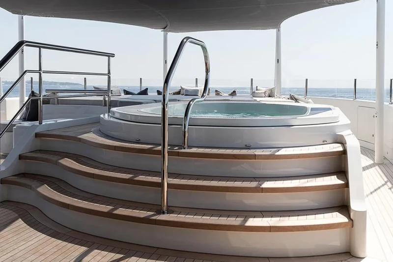 Her features include steam room, spa, elevator, underwater lights, beach club, gym and air conditioning.