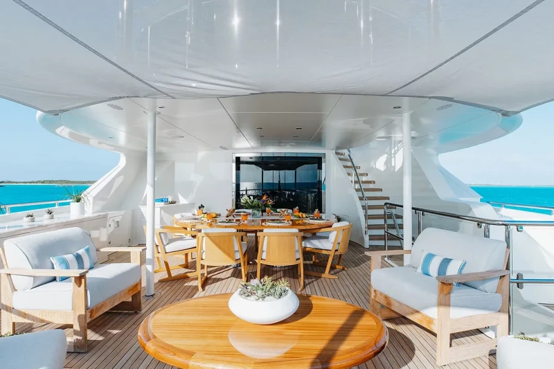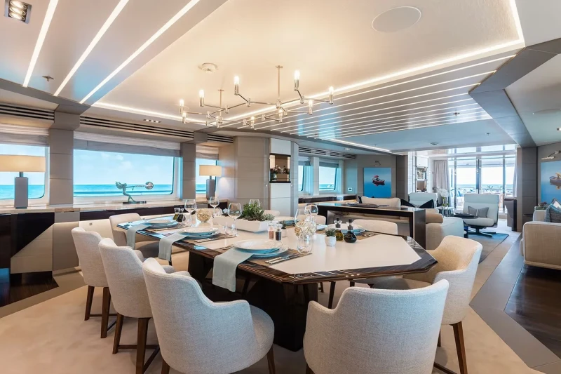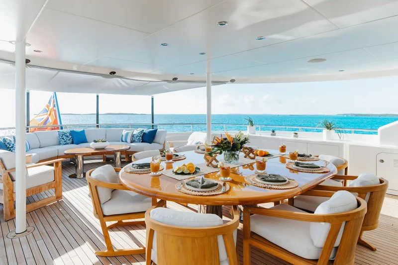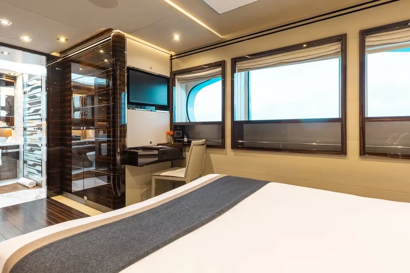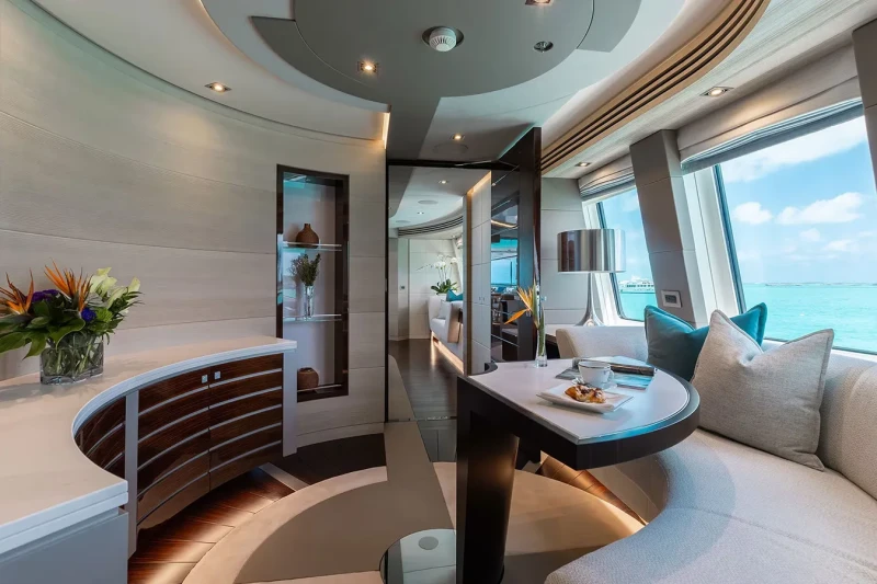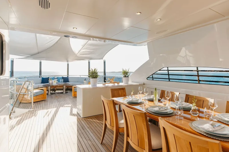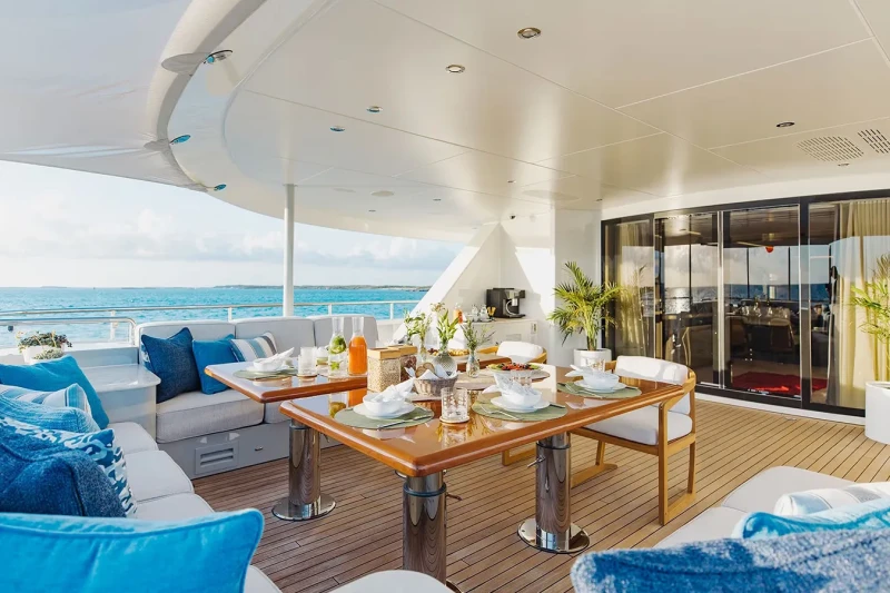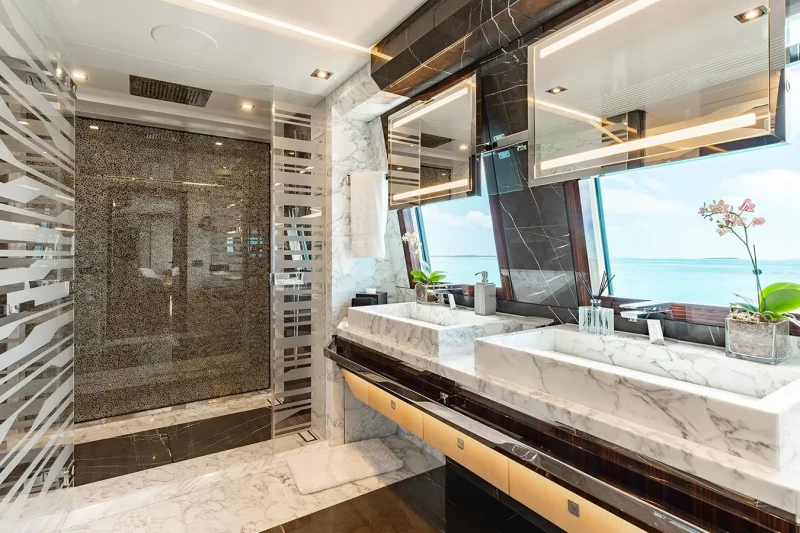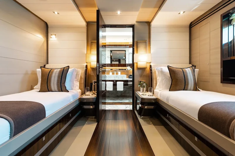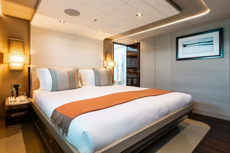 Odyssea is great for families thanks to her child-friendly setup. Built in 2012, She offers guest accommodation for up to 12 guests with a layout comprising a master suite located on the main deck, one VIP cabin, one double cabin and three twin cabins. There are 11 beds in total, including 1 king, 2 queen, 6 singles and 2 pullmans. She is also capable of carrying up to 9 crew onboard to ensure a relaxed luxury yacht charter experience.