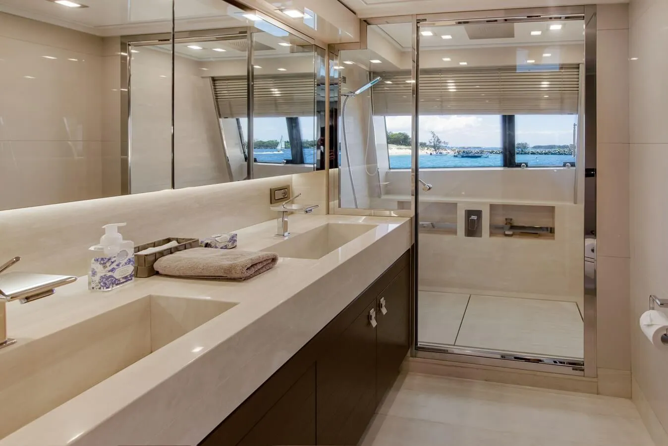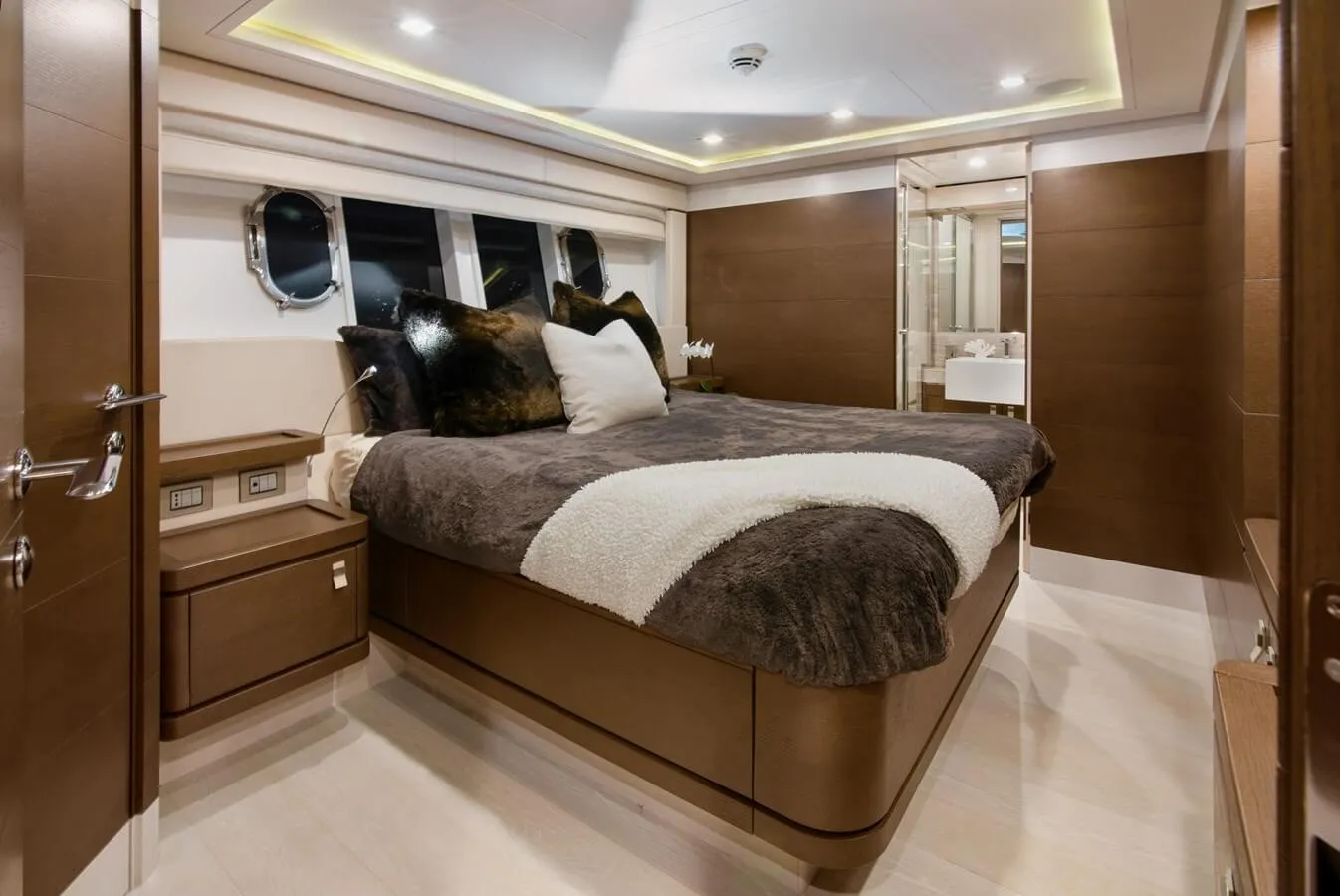Her features include underwater lights, deck jacuzzi, WiFi and air conditioning.