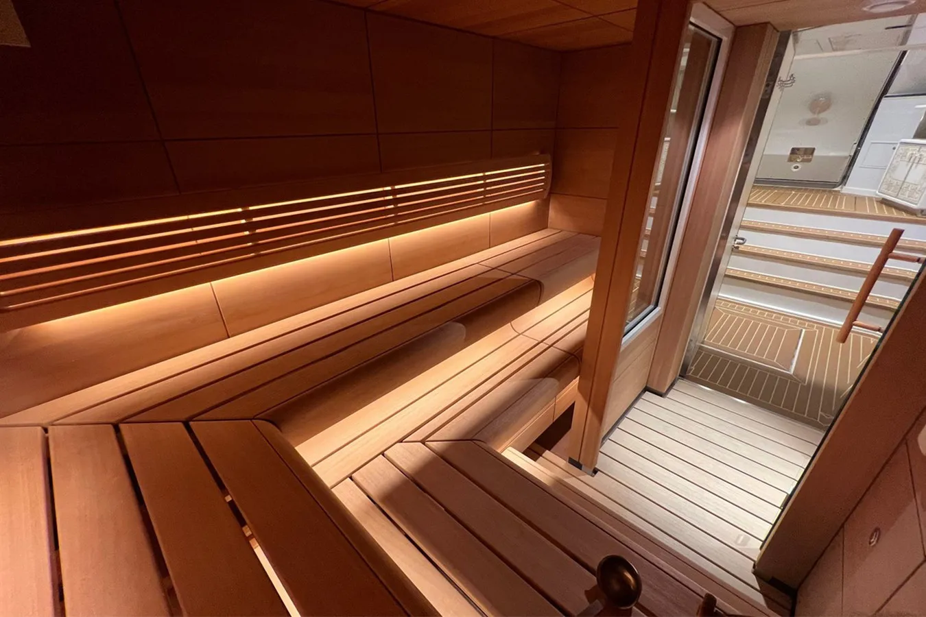Her features include sauna, elevator, gym, deck jacuzzi, WiFi and air conditioning.