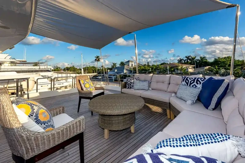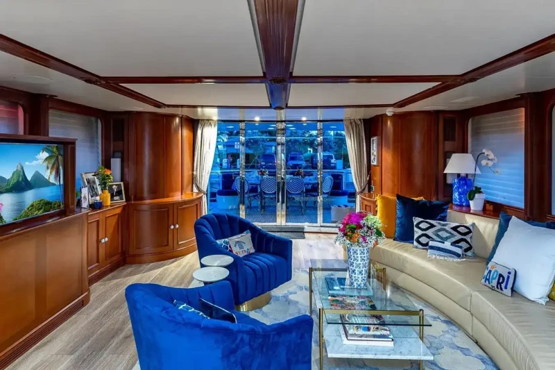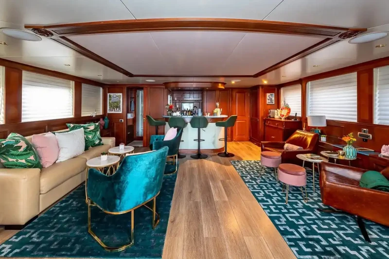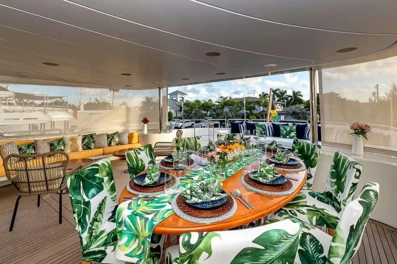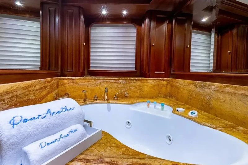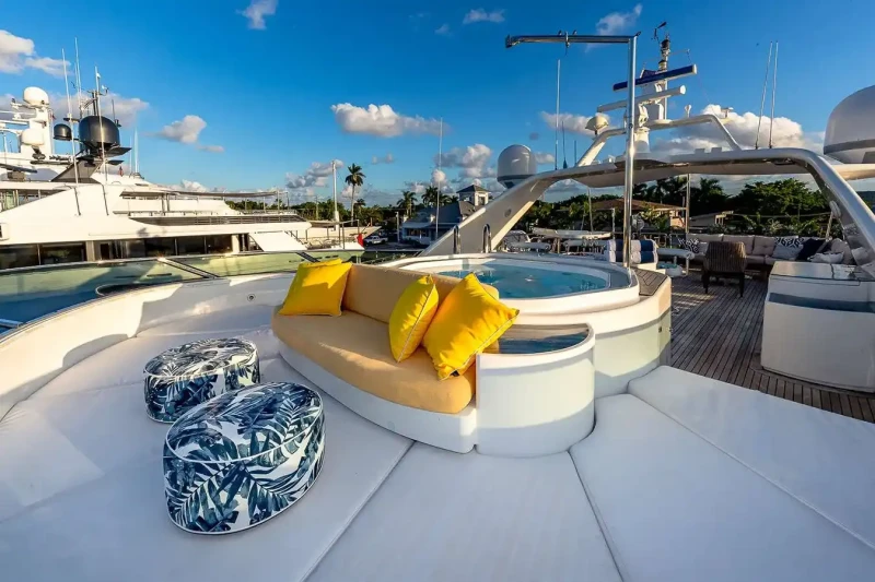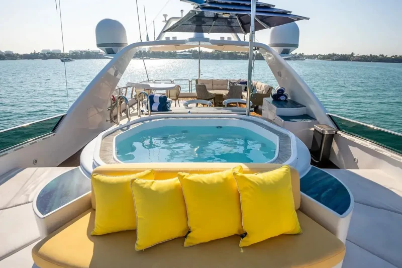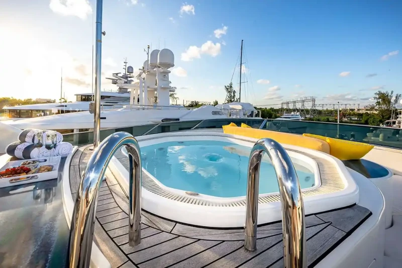 Her features include a gym, deck jacuzzi, WiFi and air conditioning.