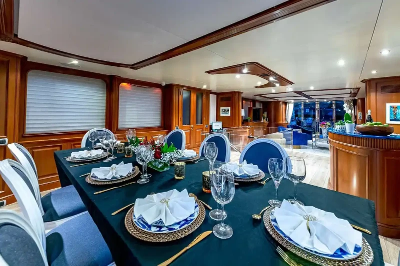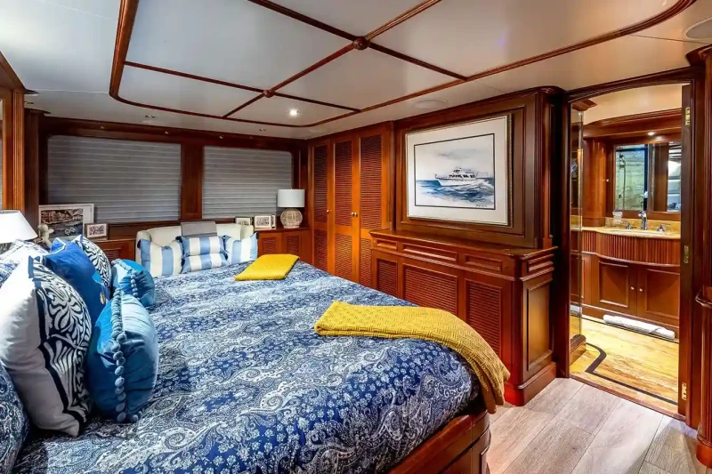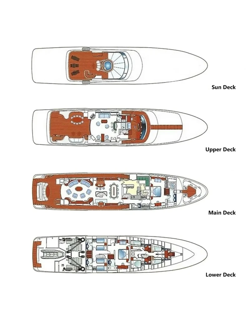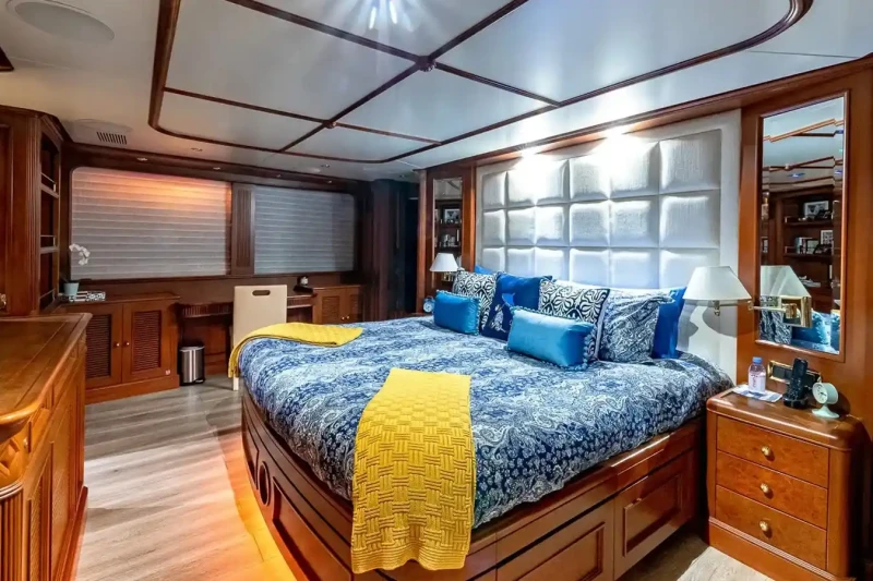 Brunello is great for families thanks to her child-friendly setup. She offers guest accommodation for up to 9 guests with a layout comprising a master suite located on the main deck, one VIP cabin and two twin cabins. There are 6 beds in total, including 2 king, 1 queen, 2 doubles, 4 singles and 1 pullman. She is also capable of carrying up to 6 crew onboard to ensure a relaxed luxury yacht charter experience.