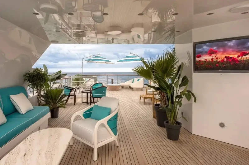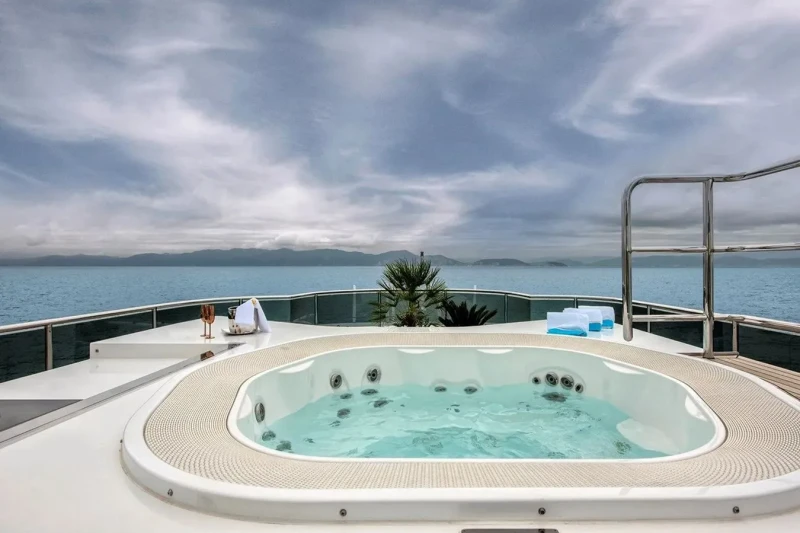 Her features include beach club, gym, deck jacuzzi, WiFi and air conditioning.