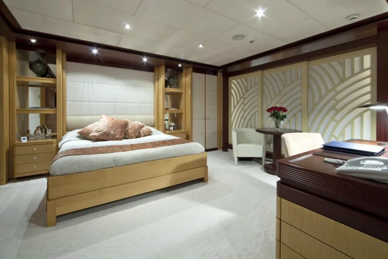 Built in 2002, Sarah offers guest accommodation for up to 12 guests in 9 suites comprising a master suite located on the main deck, four double cabins and four twin cabins. There are 13 beds in total, including 1 king, 4 queen and 8 singles. Excellent service is guaranteed, with twenty-one crew members on board to look after your every need.