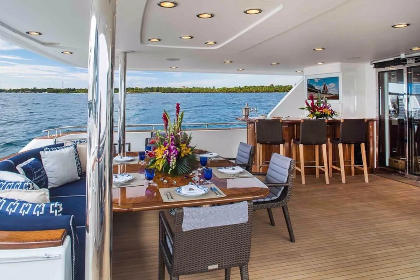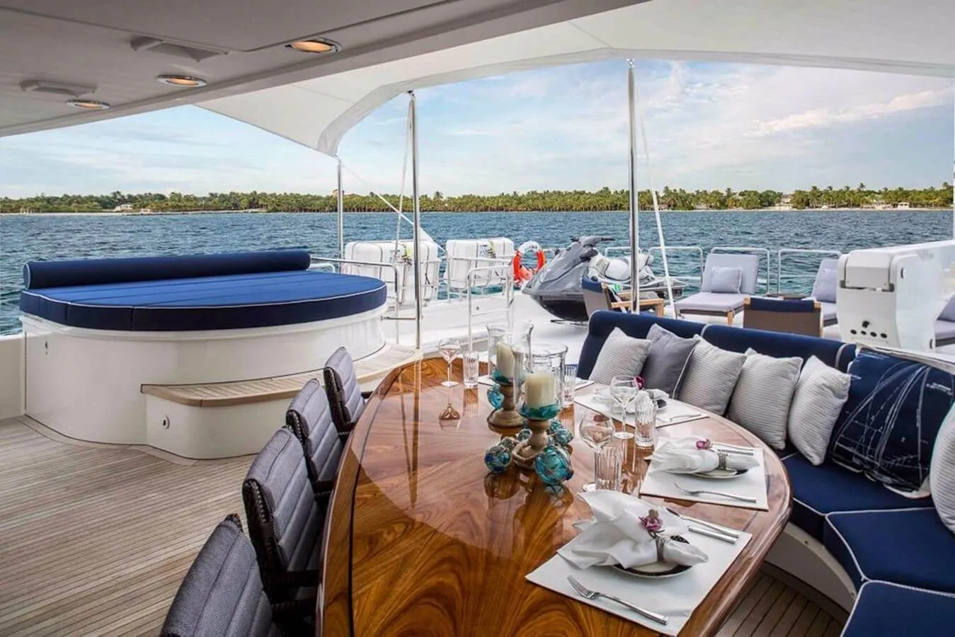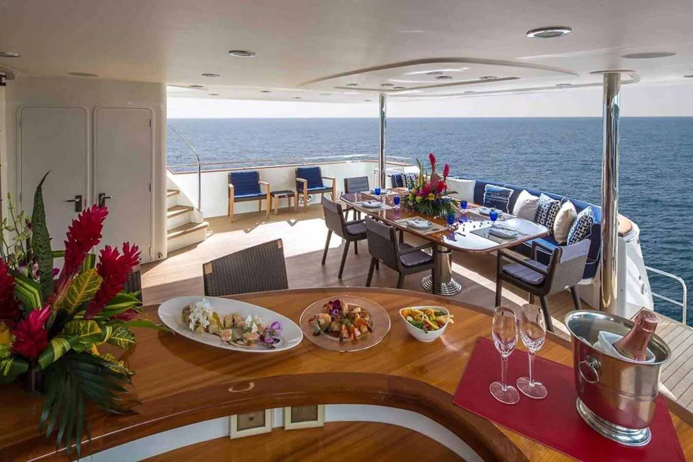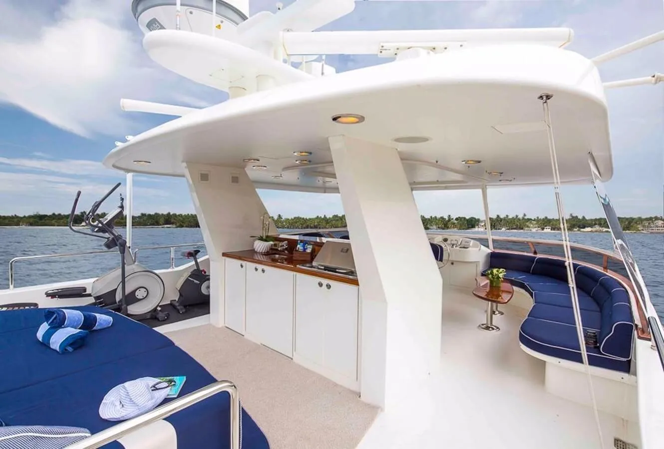 Keeping comfortable and entertained on Plan A is easy thanks to the available amenities, particularly a gym with all the latest equipment to maintain your fitness routine. Sit back with a glass of champagne in the deck jacuzzi.