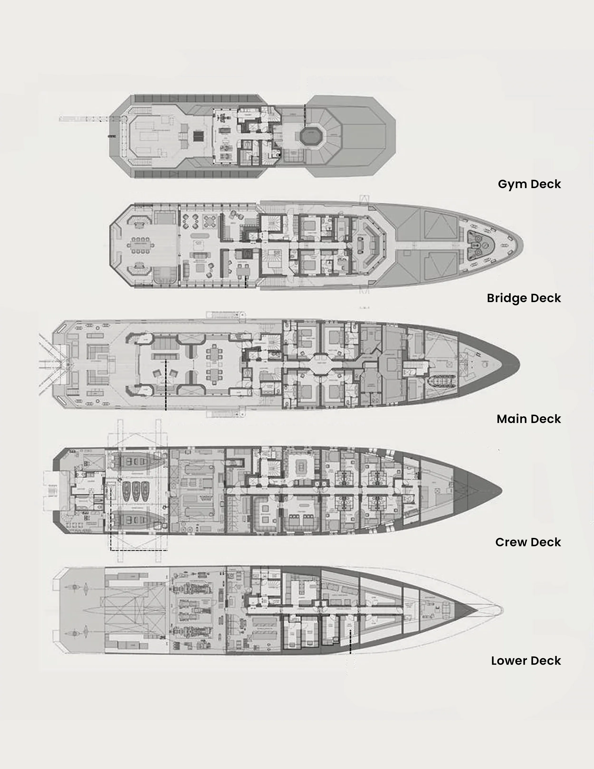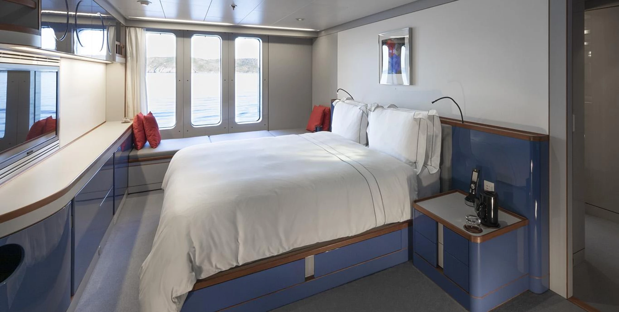 Skat has been designed to comfortably accommodate up to 12 guests in 6 suites. Additionally, there are 2 staff cabins aboard. She is also capable of carrying up to 18 crew onboard to ensure a relaxed luxury yacht experience.