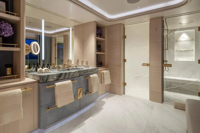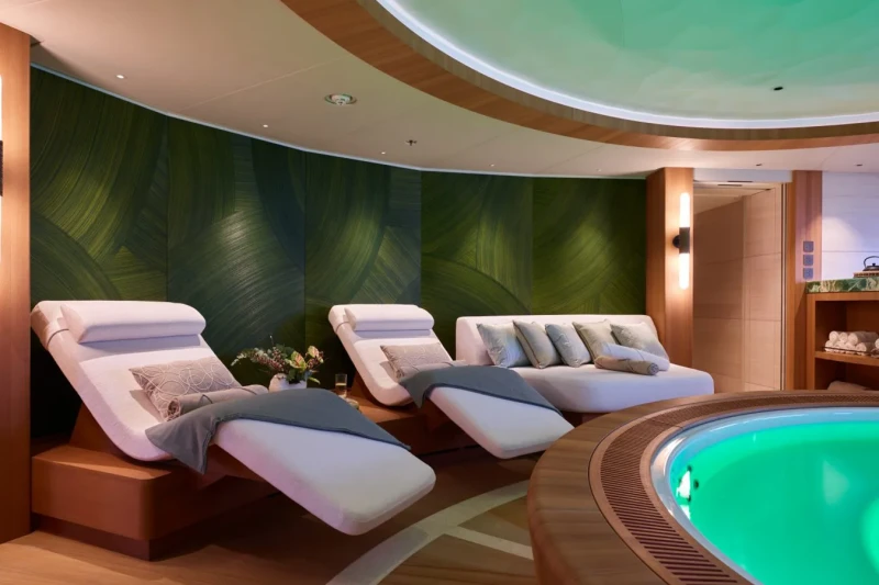 Her features include steam room, spa, beauty salon, elevator, gym, WiFi and air conditioning.