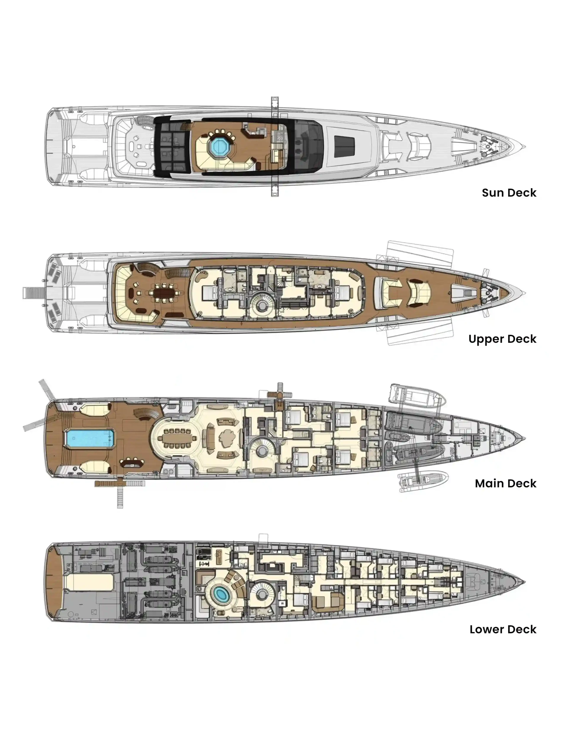 Sparta has been designed to comfortably accommodate up to 12 guests in 6 suites. Additionally, there is a staff cabin on board. She is also capable of carrying up to 14 crew onboard to ensure a relaxed luxury yacht experience.