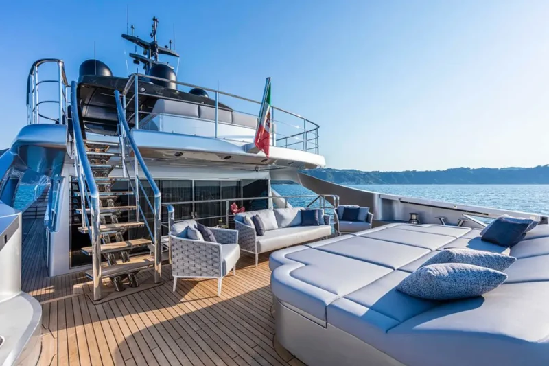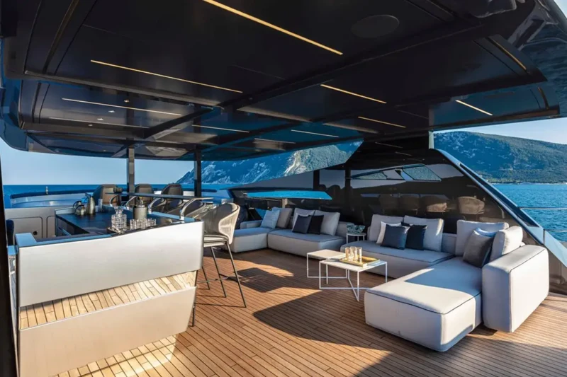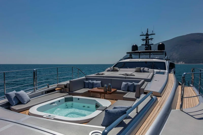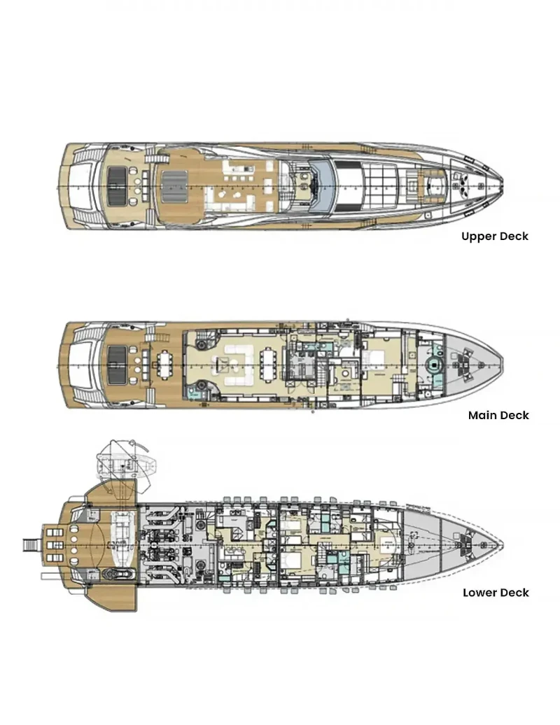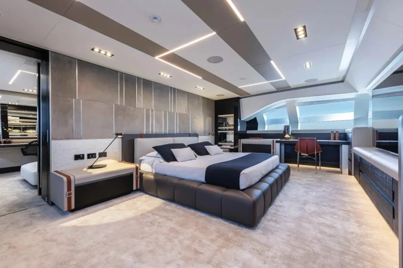 Touch Me has been designed to comfortably accommodate up to 10 guests in 5 suites comprising one VIP cabin. The supremely spacious full beam master suite features extensive storage space provided by the dressing room. She is also capable of carrying up to 7 crew onboard to ensure a relaxed luxury yacht experience.