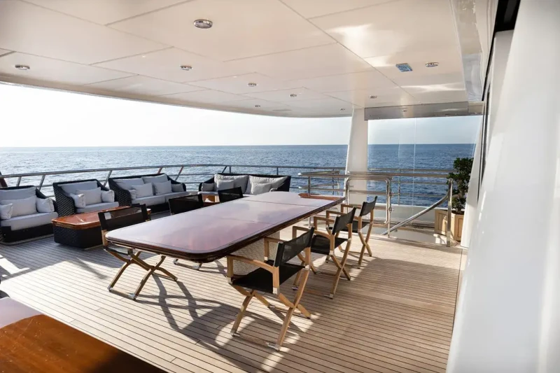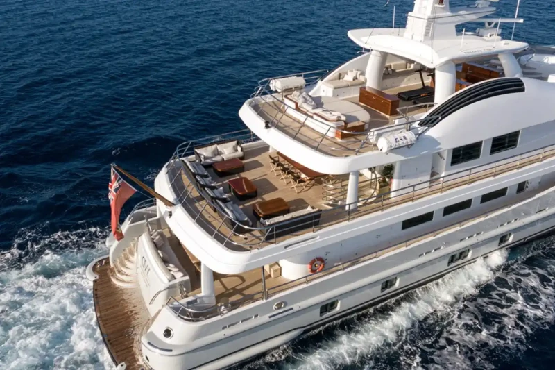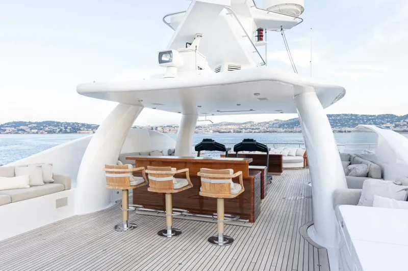 Her features include underwater lights, beach club, deck jacuzzi, WiFi and air conditioning.